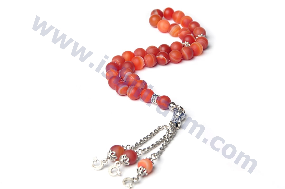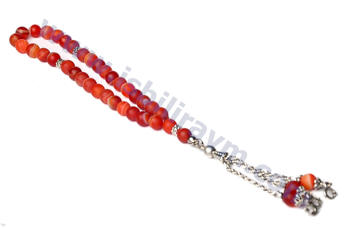 Bu akik doğal taş tesbih akik taşının en güzel tonlarından özel olarak şeçilerek üretilmiştir. Bu damarlı akik taşından üretilmiş olan tesbihin püskülü, imameleri, ayracı hiçbir yerde bulamıyacağınız model ve tasarımda olup, bu damarlı akik tesbihler  firmamızın bizzat tasarladığı modelde üretilmiştir. Ürünlerimizde orijinal doğal taşların yanı sıra estetikliğini arttırmak amacıyla bazı süsleme tesbih aparatları kullanılmış ve ürünlerin estetik görünümleri arttırılmıştır. Alacağınız damarlı akik taşı tesbihte eğer farklı tesbih aparatı kullanmak isterseniz tesbih malzemeleri kategorimizden püskül veya diğer malzemeleri seçip istediğiniz malzemede tesbihinizi dizdirebilirsiniz, bu isteğinizi sipariş notunda veya irtibat numaralarımızdan bize ulaşarak talep edebilirsiniz. Kullanılan bu aparatlar oksitli metal ve  dökümden üretilmiştir,  kimyasal bir elementle temasta bulunmadığı taktirde kararmalara karşı uzun süreli dayanıklı ve sağlamdır. Ayrıca orijinal doğal taş tesbihlerimiz firmamızın özel olarak üretmiş olduğu  doğal taş tesbihlerde ip kesme problemini ortadan kaldırmak için kullanılan kopma ve dağılmalara karşı dayanıklı, kopmayan taş ipi olan elastik misina tarzı özel lastik ipe dizilmiştir. Normal kullanımda bu ip oldukça dayanıklı esnek ve uzun ömürlüdür. Bu özellikleriyle ürünlerimizi ip kopması, tesbih dağılması gibi problemleri yaşamadan rahatlıkla uzun süreler kullanabilirsiniz. Ayrıca bu özel ipin esnek elastik yapısı itibarı ile; tesbihimiz her bileğe rahatlıkla geçmekte ve böylece zaman zamanda tesbihi bileğinize takarak bileklik olarak da kullanabilirsiniz. Sizlerede özel tasarım ve dayanıklı özel ipiyle üretilmiş, damarlı akik tesbih satın almanızı tavsiye ederiz.  Ayrıca damarlı akik taşı fiyatı da toptan fiyatına yakın uygun fiyattatır. Bu doğal taş tesbihleri hem sallamak hemde stres atmak için çekerek kullanabilirsiniz. Ayrıca bu tesbihlerin tane sayısı 33 olduğundan bu tesbihleri zikir çekmek amaçlı veya namazlarda tesbih çekmek amaçlı da kullanabilirsiniz. Çok amaçlı kullanabileceğiniz bu tesbihleri aynı zamanda muhteşem enerji ve faydalarından yararlanabilmek için de kullanabilirsiniz. Bu ürün orijinal akik taşından üretildiği için akik taşının şu psikolojik ve fiziksel faydalara sahiptir ; Çağımızın en büyük sorunlarından olan strese karşı iyi geldiği tespit edilmiştir. Akıl ve mantık gücümüzün gelişmesini sağlar. Nazara karşı korunmamızı sağlar. Hamilelik sürecinde anne bebek sağlığı için faydalı olduğu tespit edilmiştir. Kan dolaşımını düz