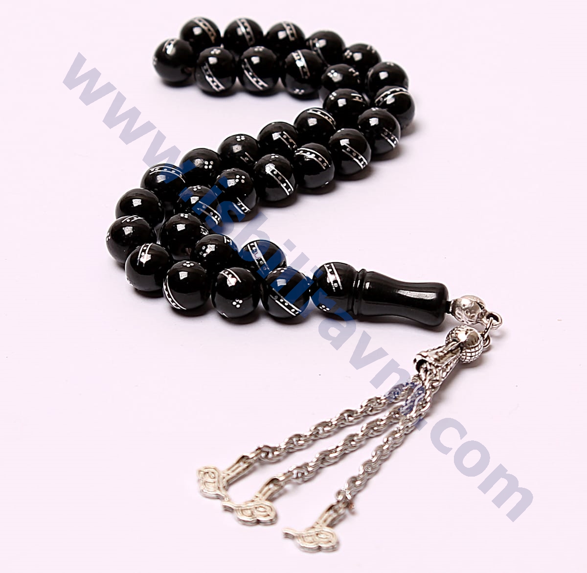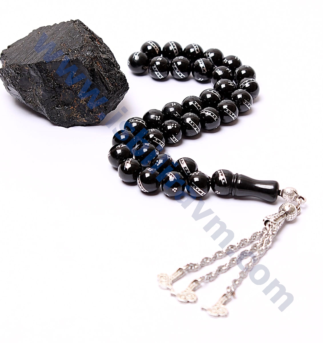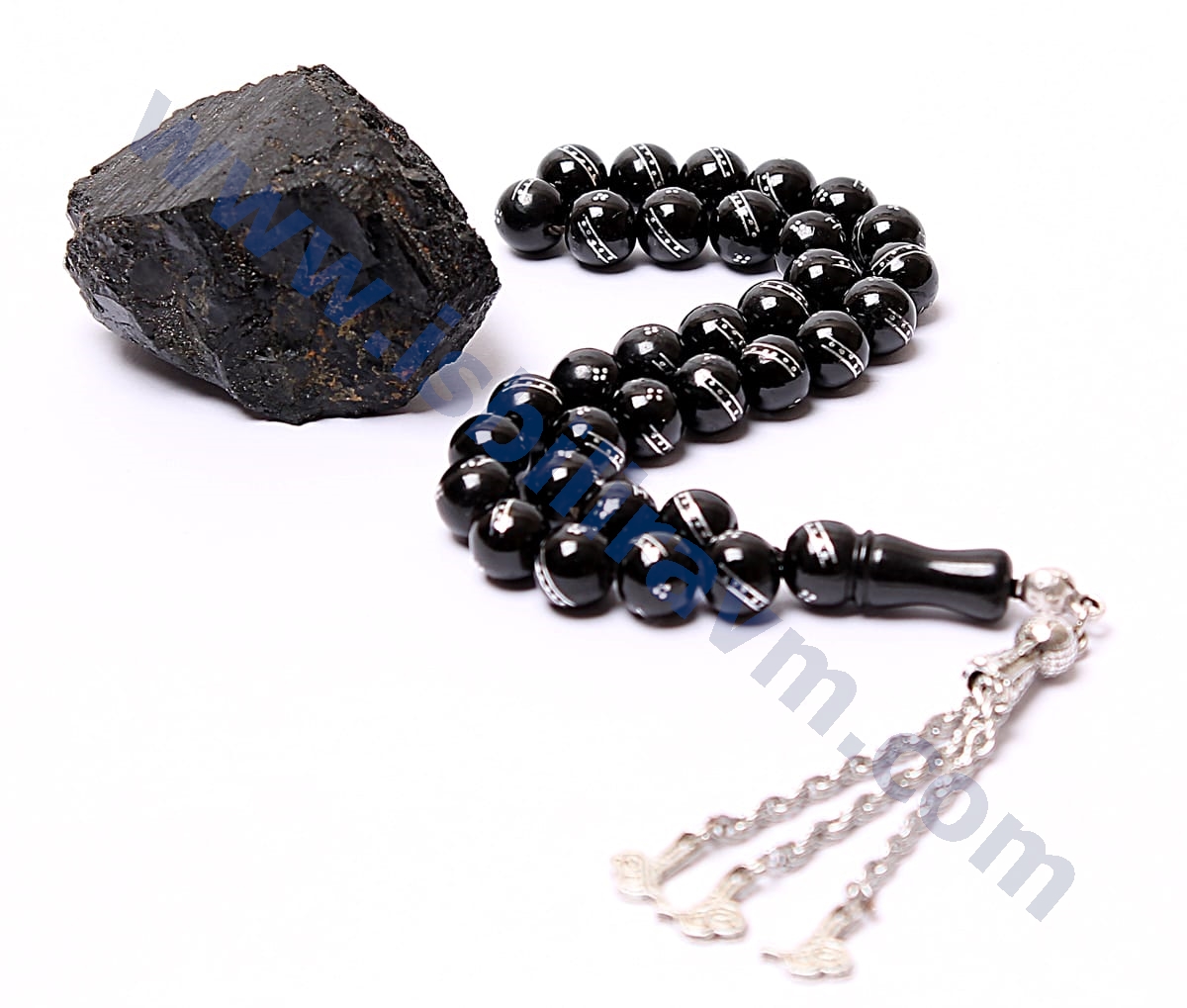 Oltu taşı tesbih en çok rabet edilen taşlardan biri olan oltu taşından üretilmiştir. Bu işlemeli oltu tesbihler, tesbih koleksiyoncularının gözdesi olan bir tesbihtir. Bu tesbihin bir diğer güzelliğiyse üzerine yapılmış işlemeler olmayışıdır. Bu sadelik tesbihe ayrı bir hava katmış ve oltu tesbihin albenisini arttırmıştır. Tesbih severlere tavsiye edeceğimiz harika taşlardan biridir oltu taşıdır. Taş tesbihlerde yaşanan ip kesme problemi genellikle oltu taşı tesbihlerde görülmemektedir. Bunun sebebi oltu taşının ağır olmayışıdır. Ayrıca püskülüde gümüş isteyebilirsiniz. (gümüş püskülün ücreti ayrıdır.)