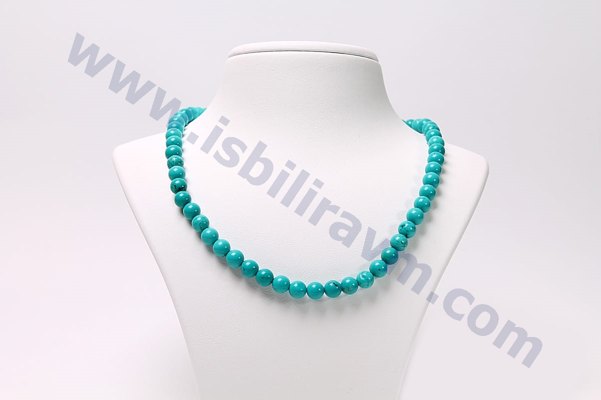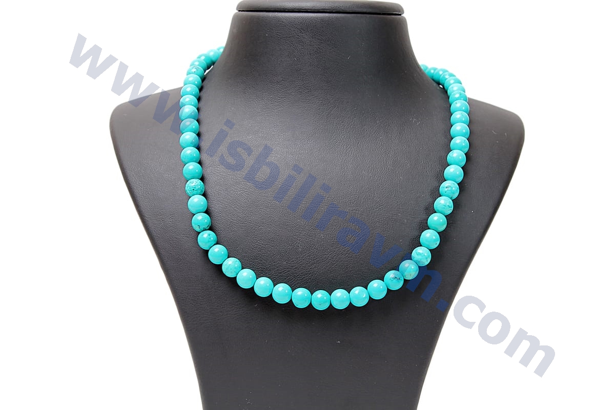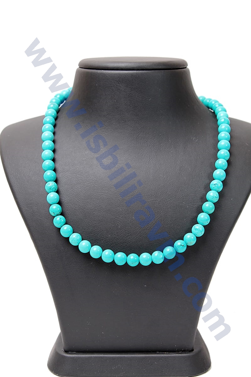 Bu turkuaz taşı kolye, turkuaz taşı kolyelerimiz firmamızın özel olarak üretmiş olduğu daha önce doğal taşlarda ip kesme problemini ortadan kaldırmak için kullanılan kopma ve dağılmalara karşı dayanıklı, kopmayan taş ipi olan misina lastiğine dizilmiştir. Normal kullanımda bu ip oldukça dayanıklı, esnek ve uzun ömürlüdür. Bu özellikleriyle doğal taşlı kolyeleri uzun süreler rahatlıkla kullanabilirsiniz. Bu doğal taş kolyeleri hem estetik görünmek için takı olarak hemde doğal taşların muhteşem enerji ve faydalarından yararlanabilmek için kullanabilirsiniz. Bu ürün orjinal turkuaz taşından üretildiği için turkuaz taşının şu psikolojik ve fiziksel faydalara sahiptir ; Turkuaz taşı iletişim, sadakat ve dostluk taşıdır. Firuze taşı nazara karşı koruma sağlar. Kemiklerin sağlıklı kalmasını ve güçlenmesini sağlar. Kemik erimesi hastalığının önlenmesinde etkilidir. Firuze taşı migrene karşı faydalıdır. Öksürüğü hafifletir. Kan dolaşımını düzenler. Solunum ve ciğerler için faydalıdır. Turkuaz taşı tansiyonu dengeler. Turkuaz taşı kişinin genç ve zinde kalmasını sağlayıcı etkisi vardır. Firuze taşı bağışıklık sistemini güçlendirir. Akıl ve mantık gücünü geliştirir.kaygılarımızı yenmemizi sağlar. Sindirim sistemine iyi gelir. Ayrıca turkuaz taşının kişiye huzur verici etkileride vardır.