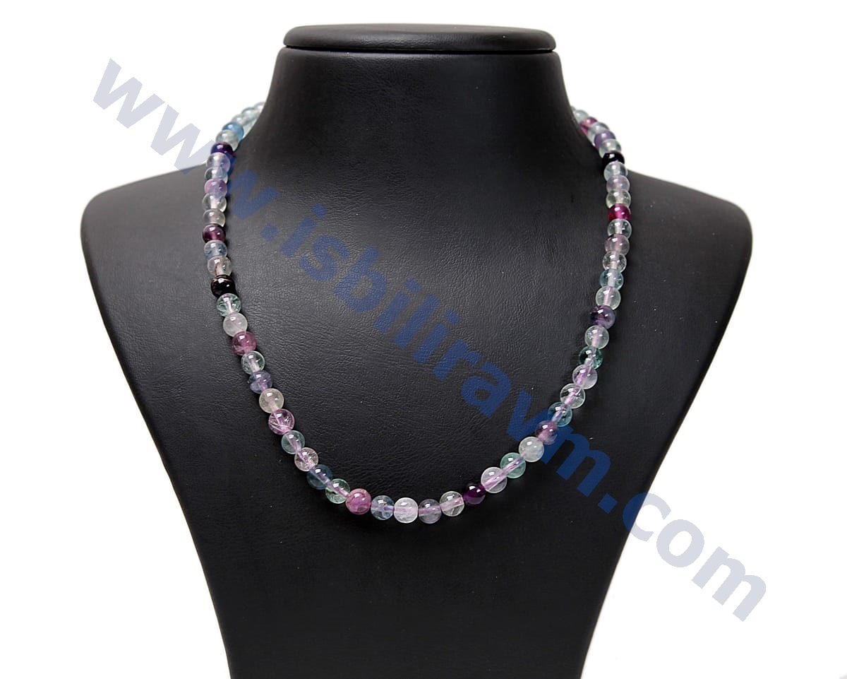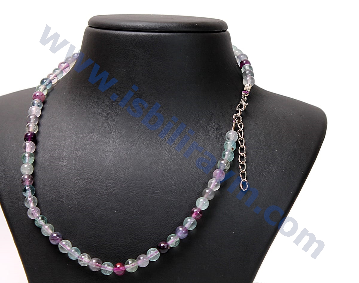 Bu florit taşı kolyeler, florit taşının en güzel tonlarından özel olarak şeçilerek üretilmiştir. Orijinal taşlardan üretilen bu kolyeleri sizler için ürettik. Ürünlerimizde orjinal doğal taşların yanı sıra estetikliğini arttırmak amacıyla bazı süsleme aparatları kullanılmış ve ürünlerin estetik görünümleri arttırılmıştır. Kullanılan bu aparatlar oksitli metal ve  dökümden üretilmiştir, kimyasal bir elementle temasta bulunmadığı taktirde kararmalara karşı uzun süreli dayanıklı, sağlamdır. Ayrıca orijinal florit taşı kolyelerimiz firmamızın özel olarak üretmiş olduğu daha önce doğal taşlarda ip kesme problemini ortadan kaldırmak için kullanılan kopma ve dağılmalara karşı dayanıklı, kopmayan taş ipi olan misina lastiğine dizilmiştir. Normal kullanımda bu ip oldukça dayanıklı, esnek ve uzun ömürlüdür. Bu özellikleriyle doğal taş kolyeleri uzun süreler rahatlıkla kullanabilirsiniz. Bu doğal taş kolyeleri hem estetik görünmek için takı olarak hemde doğal taşların muhteşem enerji ve faydalarından yararlanabilmek için kullanabilirsiniz. Bu ürün orjinal florit taşından üretildiği için florit taşının şu psikolojik ve fiziksel faydalara sahiptir ; florit taşı baş ağrılarına karşı sifalıdır. Düşüncelerimizin netleşmesini sağlar. Enerji yatıştırıcı ve huzur verici özelliği vardır. Zihinsel açıklık ve konsantrasyonu arttırıcı özelliği tespit edilmiştir. Bu özelliğİyle öğranciler için faydalıdır. Duygusal bakımdan mutsuz olduğunuzda size mutluluk veren bir taştır. Kişinin kötü anılarının tutsaklığından kurtulmasını sağlar. Duygusal boşluk hissini yatıştırır. Düşünceleriniz belirsiz olduğunda ve zihninizdeki yorgunluk hissettiğinizde florit taşı düşüncelerin netleşmesini ve zihnimizin dinlenmesini sağlar. Boyun bölgesine yakın kullanıldığında dikkati arttırır ve yetersizlik hissini yok eder. Kişinin kendine güvenini arttırır. Kişinin zihniyle ruhunun bir bütün olmasını sağlar ve bu özelliğiyle ilginç şeyleri keşfetmemize yardımcı olur.