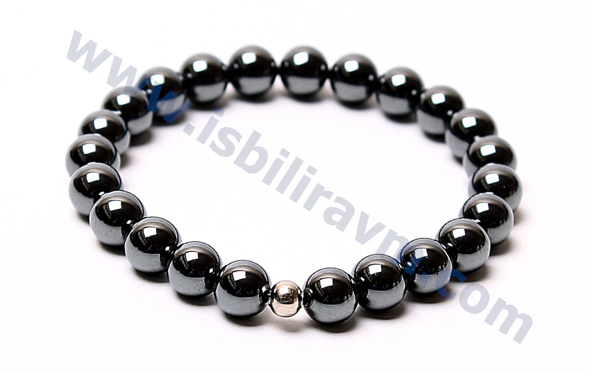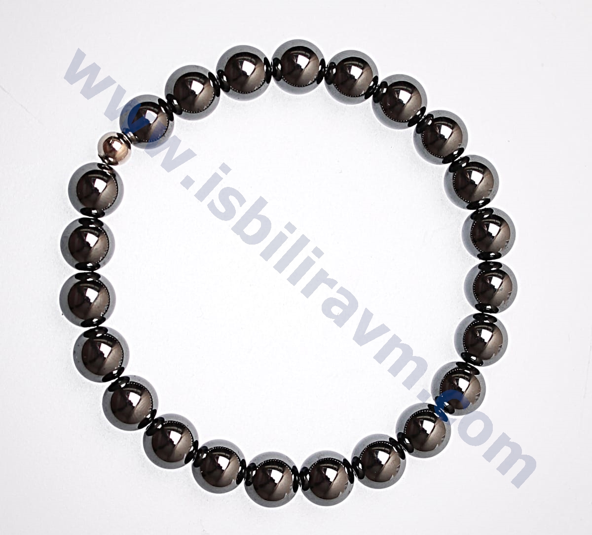 Bu hematit taşı bileklik hematit taşının en güzel tonlarından özel olarak şeçilerek üretilmiştir. Uzun çalışmalar sonucu orjinal taşlardan üretilen bu doğal taş bileklikleri sizler için ürettik. Ürünlerimizde orjinal doğal taşların yanı sıra estetikliğini arttırmak amacıyla bazı süsleme aparatları kullanılmış ve ürünlerin estetik görünümleri arttırılmıştır. Kullanılan bu aparatlar oksitli metal ve dökümden üretilmiştir, kimyasal bir elementle temasta bulunmadığı taktirde kararmalara karşı uzun süreli dayanıklı, sağlamdır. Ayrıca orjinal doğal taşlı bilekliklerimiz firmamızın özel olarak üretmiş olduğu daha önce doğal taşlarda ip kesme problemini ortadan kaldırmak için kullanılan kopma ve dağılmalara karşı dayanıklı, kopmayan taş ipi olan misina lastiğine dizilmiştir. Normal kullanımda bu ip oldukça dayanıklı esnek ve uzun ömürlüdür. Bu özellikleriyle doğal taşlı bileklikleri uzun süreler rahatlıkla kullanabilirsiniz. Bu doğal taş bileklikleri hem estetik görünmek için takı olarak hemde doğal taşların muhteşem enerji ve faydalarından yararlanabilmek için kullanabilirsiniz. Bu ürün orjinal hematit taşından üretildiği için hematit taşının şu psikolojik ve fiziksel faydalara sahiptir ; Bircok taşta olduğu gibi hematit taşıda çağımızın en büyük sorunlarından olan strese ve gerginliğe karşı koruma sağlar. İnsana mutluluk, pozitif düşünme ve cesaret verici etkileri vardır. Hematit taşı kararsızlıklarımıza iyi gelir. Seçimlerimizde en iyisini bulmamıza yardımcı olur. Hematit taşı bel soğukluğuna faydalıdır. Vücuttaki kan dolaşımını düzenler ve buna bağlı olarakta tansiyona iyi gelir. Hafızayı kuvvetlendirir. Eklemlerdeki romatizmalara iyi gelir. Hematit taşı saç dökülmelerini engeller. Saçlarımızın güçlenmesini ve gürleşmesini sağlar. Aşırı duygulanma heycanlanmaya iyi gelir. Eenerji ve canlılık verici etkileri vardır.