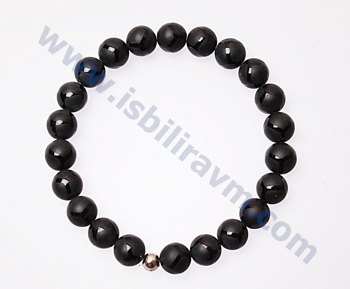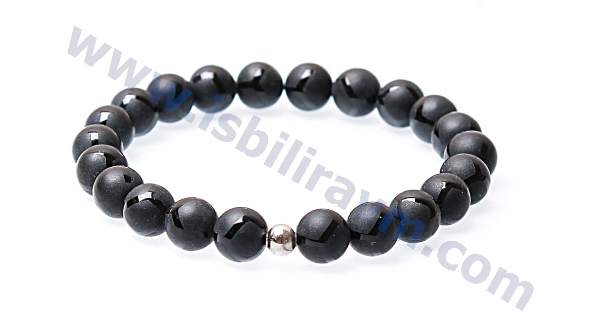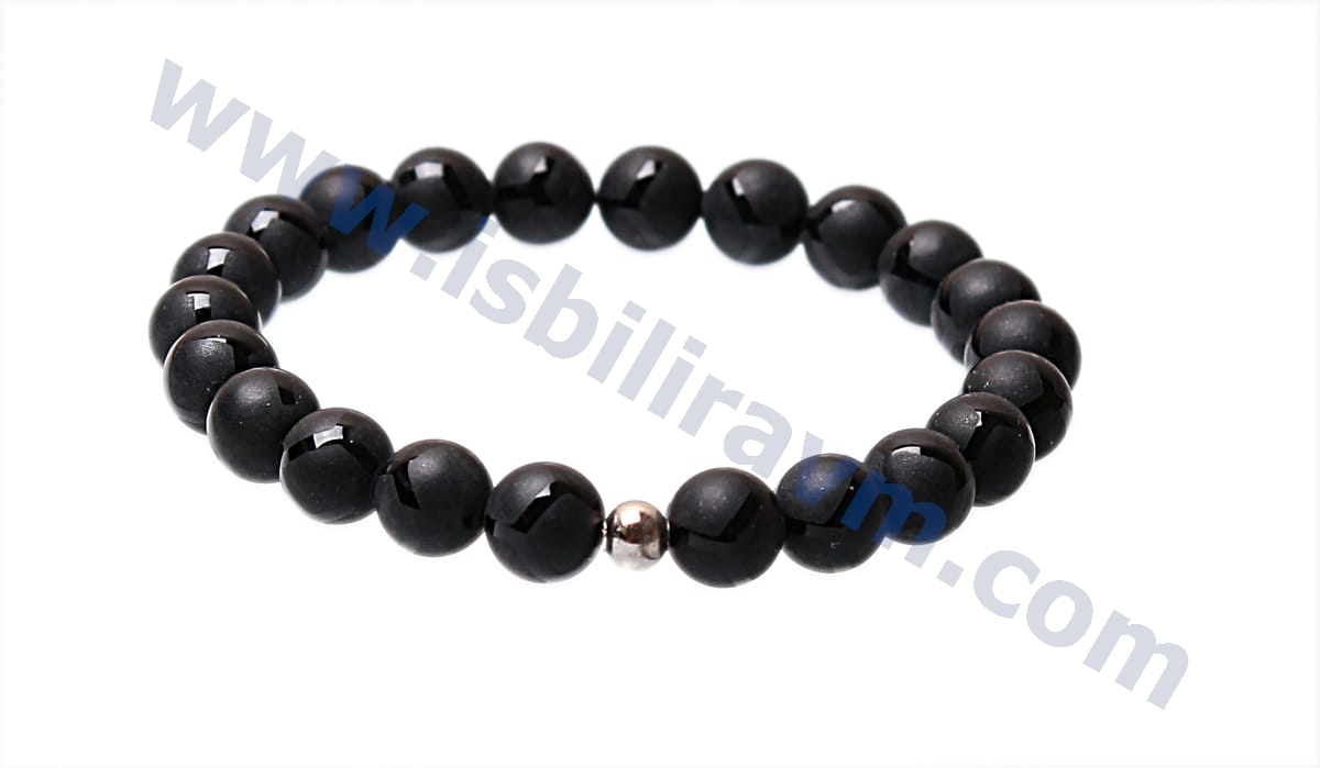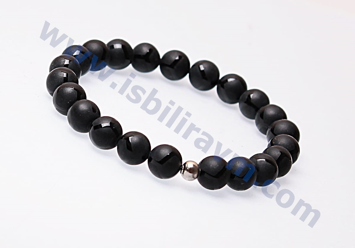 Bu oniks taşı bileklik mat onix taşının en güzel tonlarından özel olarak şeçilerek üretilmiştir. Uzun çalışmalar sonucu orjinal taşlardan üretilen bu doğal taş bileklikleri sizler için ürettik. Ürünlerimizde orjinal doğal taşların yanı sıra estetikliğini arttırmak amacıyla bazı süsleme aparatları kullanılmış ve ürünlerin estetik görünümleri arttırılmıştır. Kullanılan bu aparatlar oksitli metal ve  dökümden üretilmiştir, kimyasal bir elementle temasta bulunmadığı taktirde kararmalara karşı uzun süreli dayanıklı, sağlamdır. Ayrıca orjinal doğal taştan üretilmiş bilekliklerimiz firmamızın özel olarak üretmiş olduğu daha önce doğal taşlarda ip kesme problemini ortadan kaldırmak için kullanılan kopma ve dağılmalara karşı dayanıklı, kopmayan taş ipi olan misina lastiğine dizilmiştir. Normal kullanımda bu ip oldukça dayanıklı esnek ve uzun ömürlüdür. Bu özellikleriyle doğal taşlı bileklikleri uzun süreler rahatlıkla kullanabilirsiniz. Bu doğal taşlı bileklikleri hem estetik görünmek için takı olarak hemde doğal taşların muhteşem enerji ve faydalarından yararlanabilmek için kullanabilirsiniz. Bu ürün orjinal oniks taşından üretildiği için mat oniks taşının şu psikolojik ve fiziksel faydalara sahiptir ; Oniks taşı'nın kadın erkek ilişkilerini dengelediği tespit edilmiştir. Evli çiftler arasında uyumluluk sağladığı bilinmektedir. Bağımlılıktan kurtulmaya yardımcı olur. Yani; sigara, alkol vb. hertürlü kurtulmak istediğiniz bağımlılıkdan kurtarır. Oniks taşının kişideki oto kontrol yeteneğini geliştirdiği tespit edilmiştir. Meditasyon sırasında kişinin içini görmeye yardımcı olur. Zararlı seksüel hırsları zayıflatıcı etkileri tespit edilmiştir. Pozitif düşünmemize yardımcı olur. Stres ve depresyona karşı etkilidir. Kişiye mutluluk ve öz güven verir. Oniks taşı şans taşı olarak da bilinir. Cinsel gücü arttırıcı etkileride bilinmektedir. Konsantrasyonu artırır. Negatif enerjiyi ortadan kaldırdığı gibi kişiye pozitif enerji verir. Nazara karşı çok etkili bir taştır. Aşırı gergin kişileri sakinleştirici etkisi vardır. Hertürlü kaygılardan kurtarır insanı. Kişinin korkularından kurtulmasına yardımcı olur cesaret verir. Kulaklar için faydalıdır. Tene deymesiyle birlikte etkisini gösterir duyma gücünü yükseltir. Oniks taşı  mantar hastalıkları ve enfeksiyonlarda kullanılır.