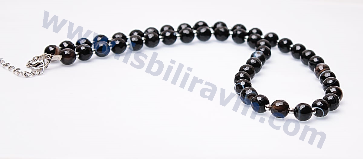 Bu akik taşı kolyeler akik taşının en güzel tonlarından özel olarak şeçilerek üretilmiştir. Orjinal taşlardan üretilen bu kolyeleri sizler için ürettik. Ürünlerimizde orjinal doğal taşların yanı sıra estetikliğini arttırmak amacıyla bazı süsleme aparatları kullanılmış ve ürünlerin estetik görünümleri arttırılmıştır. Kullanılan bu aparatlar oksitli metal ve  dökümden üretilmiştir, kimyasal bir elementle temasta bulunmadığı taktirde kararmalara karşı uzun süreli dayanıklı, sağlamdır. Ayrıca orjinal akik kolyelerimiz firmamızın özel olarak üretmiş olduğu daha önce doğal taşlarda ip kesme problemini ortadan kaldırmak için kullanılan kopma ve dağılmalara karşı dayanıklı, kopmayan taş ipi olan misina lastiğine dizilmiştir. Normal kullanımda bu ip oldukça dayanıklı, esnek ve uzun ömürlüdür. Bu özellikleriyle doğal taşlı kolyeleri uzun süreler rahatlıkla kullanabilirsiniz. Bu doğal taş kolyeleri hem estetik görünmek için takı olarak hemde doğal taşların muhteşem enerji ve faydalarından yararlanabilmek için kullanabilirsiniz. Bu ürün orjinal akik taşından üretildiği için akik taşının şu psikolojik ve fiziksel faydalara sahiptir ; Çağımızın en büyük sorunlarından olan strese karşı iyi geldiği tespit edilmiştir. Akıl ve mantık gücümüzün gelişmesini sağlar. Nazara karşı korunmamızı sağlar. Hamilelik sürecinde anne bebek sağlığı için faydalı olduğu tespit edilmiştir. Kan dolaşımını düzenlediği ve tansiyonu dengeleyici özelliğinin olduğuda tespit edilmiştir. Damarları koruyucu güçlendirici etkileri tespit edilmiştir. Cilt rahatsızlıklarına iyi geldiği söylenir. Dişler ve kemikler için faydalıdır. Taşıyan kişiyi olumsuzluklardan koruyucu etkisi vardır. Bu özelliği hadislerlede kanıtlanmışdır. Uykusuzluklara ve karabasanlara iyi gelir. Metebolizmamızı hızlandırır. Korkaklığa karşı iyi geldiği bilinir. Çevreyle uyumu arttırır. Akik taşı kendinizi kötü hissettiğinizde olayların iyi yönlerini görmenizi sağlar. Negatif enerjiden insanı arındırır ve insana iyilik mutluluk verir.