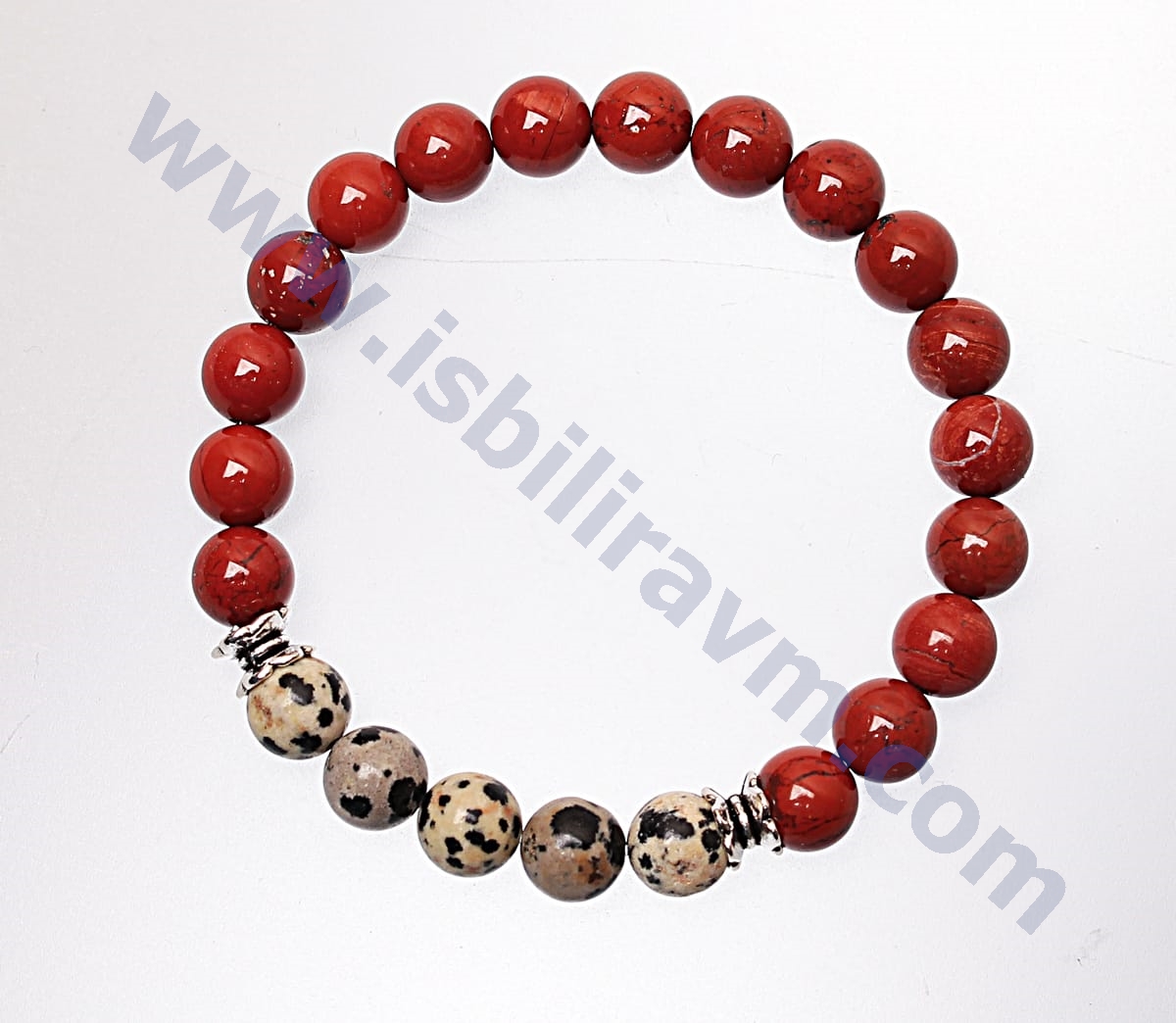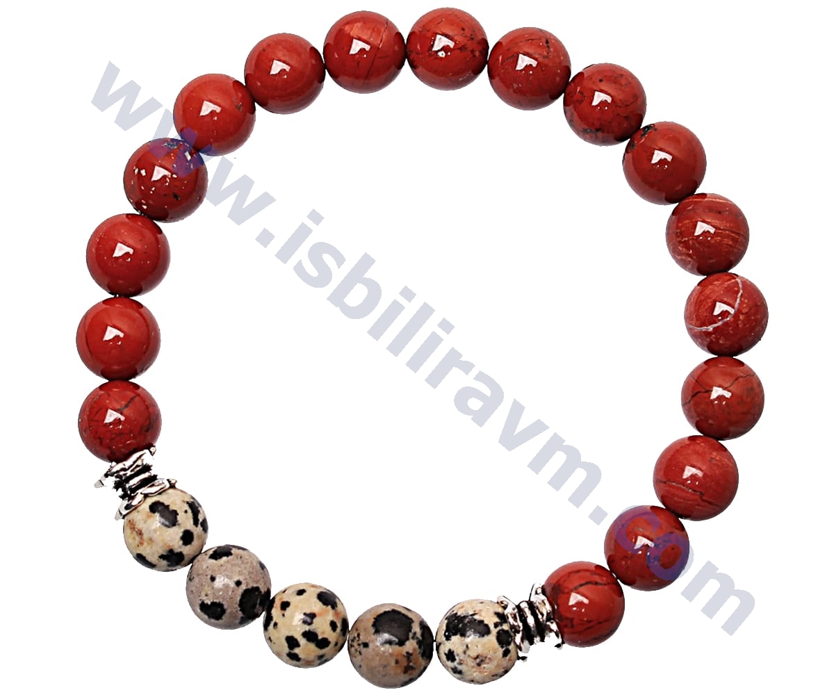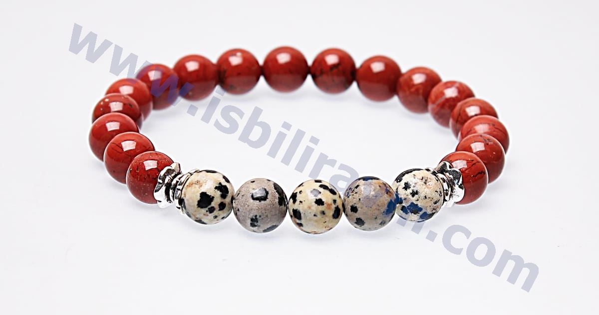 Bu jasper taşı bileklik jasper taşının en güzel tonlarından özel olarak şeçilerek üretilmiştir. Uzun çalışmalar sonucu orjinal taşlardan üretilen bu doğal taş bileklikleri sizler için ürettik. Ürünlerimizde orjinal doğal taşların yanı sıra estetikliğini arttırmak amacıyla bazı süsleme aparatları kullanılmış ve ürünlerin estetik görünümleri arttırılmıştır. Kullanılan bu aparatlar oksitli metal ve  dökümden üretilmiştir, kimyasal bir elementle temasta bulunmadığı taktirde kararmalara karşı uzun süreli dayanıklı, sağlamdır. Ayrıca orjinal doğal taşlı bilekliklerimiz firmamızın özel olarak üretmiş olduğu daha önce doğal taşlarda ip kesme problemini ortadan kaldırmak için kullanılan kopma ve dağılmalara karşı dayanıklı, kopmayan taş ipi olan misina lastiğine dizilmiştir. Normal kullanımda bu ip oldukça dayanıklı esnek ve uzun ömürlüdür. Bu özellikleriyle doğal taşlı bileklikleri uzun süreler rahatlıkla kullanabilirsiniz. Bu doğal taşlı bileklikleri hem estetik görünmek için takı olarak hemde doğal taşların muhteşem enerji ve faydalarından yararlanabilmek için kullanabilirsiniz. Bu ürün orjinal jasper taşından üretildiği için jasper taşının şu psikolojik ve fiziksel faydalara sahiptir ; karaciğer,dalak ve mesaneyi kuvvetlendirdiği ve koruduğu bilinir. Jasper taşının güçlü ve tedavi edici etkileri vardır.Sindirim sistemini düzenler. Safra kesesini korur ve güçlendirir. Endokrin sisteminde dengeyi sağlar. Kişinin kendisini sağlıklı ve güçlü hissetmesini sağlar. Fiziksel direnci arttırır. Erkeklerde erkeksi özellikleri arttırır. Sevgiyi,kararlılığı ve inancı arttırıcı etkileri vardır. Jasper taşı güç ve cesaret taşıdır. Bedeni toksinlerden arındırır.Yılan ve örümcek zehirlenmelerine karşı etkilidir. Bu taş bereket taşı olarakta bilinir. Konuşma yeteneğini arttırır.
