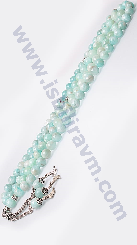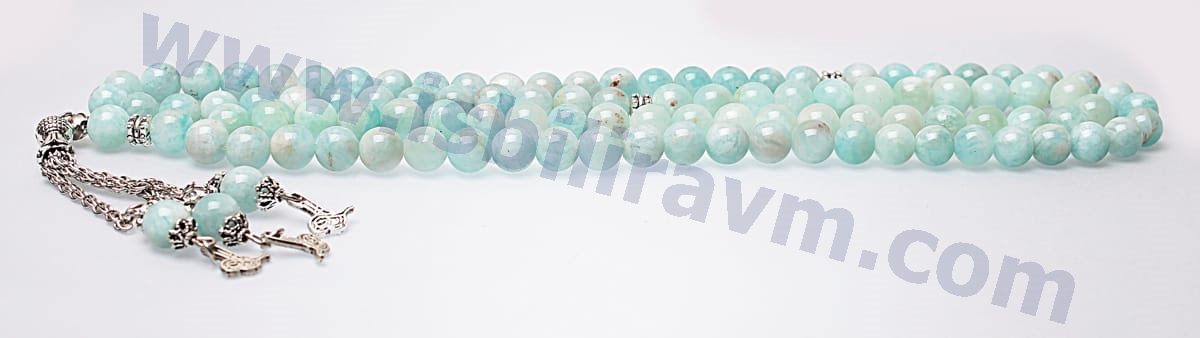 Bu amazonit doğal taş tesbih amazonit taşının en güzel tonlarından özel olarak şeçilerek üretilmiştir. Bu amazonit taşından üretilmiş olan tesbihin püskülü, imameleri, ayracı hiçbir yerde bulamıyacağınız model ve tasarımda olup, amazonit taşı tesbihler firmamızın bizzat tasarladığı modelde üretilmiştir. Ürünlerimizde orijinal doğal taşların yanı sıra estetikliğini arttırmak amacıyla bazı süsleme tesbih aparatları kullanılmış ve ürünlerin estetik görünümleri arttırılmıştır. Alacağınız tesbihte eğer farklı tesbih aparatı kullanmak isterseniz tesbih malzemeleri kategorimizden püskül veya diğer malzemeleri seçip istediğiniz malzemede tesbihinizi dizdirebilirsiniz, bu isteğinizi sipariş notunda veya irtibat numaralarımızdan bize ulaşarak talep edebilirsiniz. Kullanılan bu aparatlar oksitli metal ve dökümden üretilmiştir, kimyasal bir elementle temasta bulunmadığı taktirde kararmalara karşı uzun süreli dayanıklı ve sağlamdır. Ayrıca orjinal doğal taş tesbihlerimiz firmamızın özel olarak üretmiş olduğu doğal taş tesbihlerde ip kesme problemini ortadan kaldırmak için kullanılan kopma ve dağılmalara karşı dayanıklı, kopmayan taş ipi olan elastik misina tarzı özel lastik ipe dizilmiştir. Normal kullanımda bu ip oldukça dayanıklı esnek ve uzun ömürlüdür. Bu özellikleriyle ürünlerimizi ip kopması, tesbih dağılması gibi problemleri yaşamadan rahatlıkla uzun süreler kullanabilirsiniz. Ayrıca bu özel ipin esnek elastik yapısı itibarı ile; tesbihimiz her bileğe rahatlıkla geçmekte ve böylece zaman zamanda tesbihi bileğinize takarak bileklik olarak da kullanabilirsiniz. Sizlerede özel tasarım ve dayanıklı özel ipiyle üretilmiş, amazonit tesbih satın almanızı tavsiye ederiz. Ayrıca amazonit taşı tesbih fiyatları da toptan fiyatına yakın uygun fiyattatır. Ayrıca bu tesbihlerin tane sayısı 99 olduğundan bu tesbihleri zikir çekmek amaçlı veya namazlarda tesbih çekmek amaçlı da kullanabilirsiniz. Çok amaçlı kullanabileceğiniz bu tesbihleri aynı zamanda muhteşem enerji ve faydalarından yararlanabilmek için de kullanabilirsiniz. Bu ürün orijinal amazonit taşından üretildiği için amazonit taşının şu psikolojik ve fiziksel faydalara sahiptir ; duygusal olarak yaralanmış kişilerin duygusal yaralarının iyileşmesine yardımcı olur. Kişinin aşk ve sevgiyle ilgili iletişim becerisini arttırır. Hamilelik sonu doğumu kolaylaştırdığı bilinir. Kalbi korur kalp hastalıkları için faydalıdır. Kaslar ve sinir sistemi için faydalıdır. Amazonit taşı aşırı heyecana, kızgınlığa ve öfkeye karşı etkilidir. Akıl gücünü ve anlayış gücünü arttırır bu özelliğiyle özellikle öğrenciler için faydalıdır. Kişinin yaşama sevincini arttırır. Kalsiyum eksikliklerini giderir ve diş çürümelerini engellediği söylenir. Kişinin kendini iafade etme gücünü arttırır. Başkalarıyla uyumlu bir şekilde çalışmaya yardımcı olur.