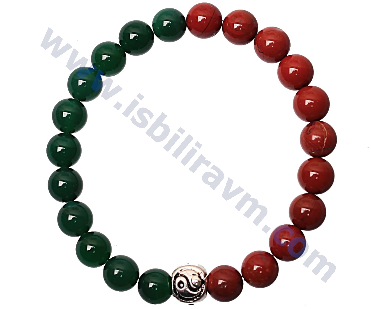 Bu erkek bileklik jasper taşı ve akik taşının en güzel tonlarından özel olarak şeçilerek üretilmiştir. Uzun çalışmalar sonucu orjinal taşlardan üretilen bu doğal taş bileklikleri sizler için ürettik. Ürünlerimizde orjinal doğal taşların yanı sıra estetikliğini arttırmak amacıyla bazı süsleme aparatları kullanılmış ve ürünlerin estetik görünümleri arttırılmıştır. Kullanılan bu aparatlar oksitli metal ve dökümden üretilmiştir, kimyasal bir elementle temasta bulunmadığı taktirde kararmalara karşı uzun süreli dayanıklı, sağlamdır. Ayrıca orjinal doğal taşlı takılarımızı firmamızın özel olarak üretmiş olduğu daha önce doğal taşlarda ip kesme problemini ortadan kaldırmak için kullanılan kopma ve dağılmalara karşı dayanıklı, kopmayan taş ipi olan misina lastiğine dizilmiştir. Normal kullanımda bu ip oldukça dayanıklı esnek ve uzun ömürlüdür. Bu özellikleriyle doğal taşlı bileklikleri uzun süreler rahatlıkla kullanabilirsiniz. Bu taşlı erkek bilekliklerini hem estetik görünmek için takı olarak hemde doğal taşların muhteşem enerji ve faydalarından yararlanabilmek için kullanabilirsiniz. Bu ürün orjinal jasper taşı ve akik taşından üretildiği için jasper taşı ve akik taşının şu psikolojik ve fiziksel faydalara sahiptir ;