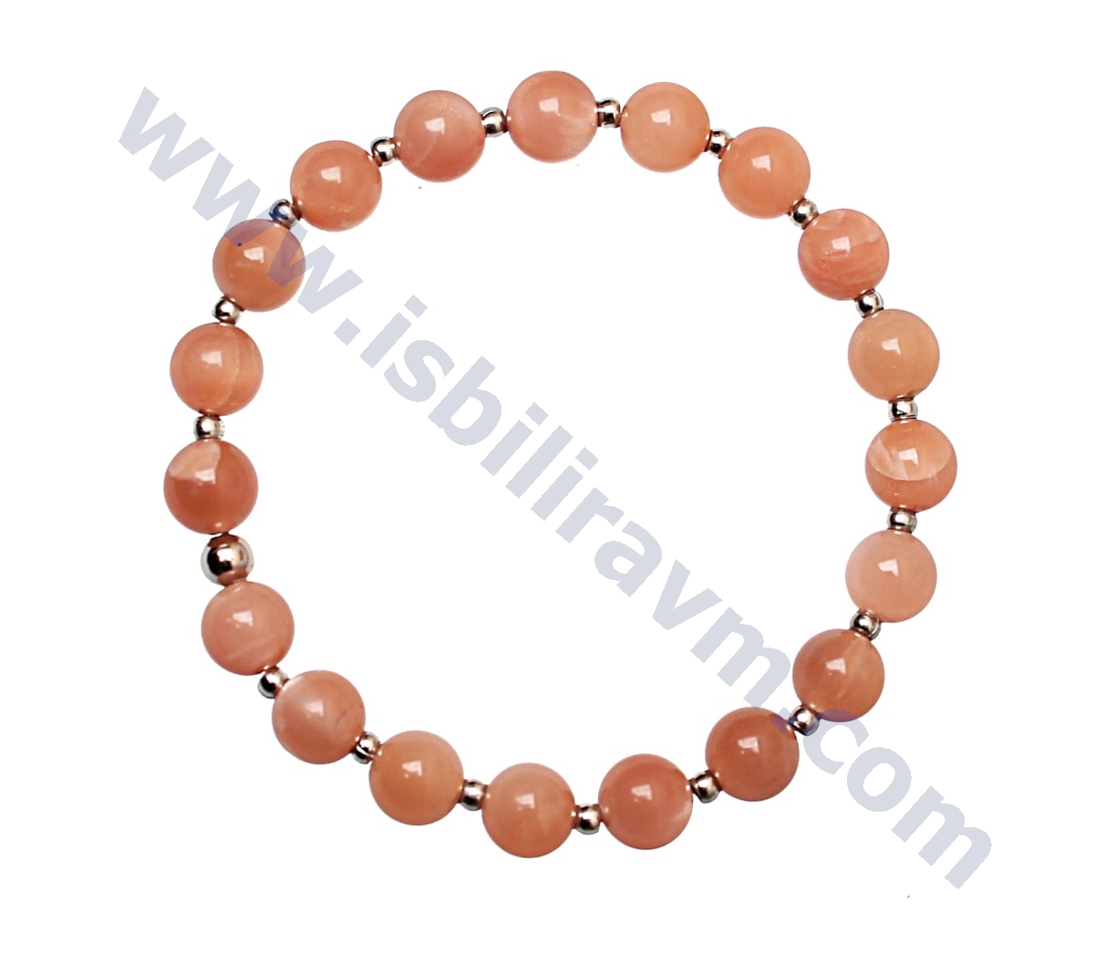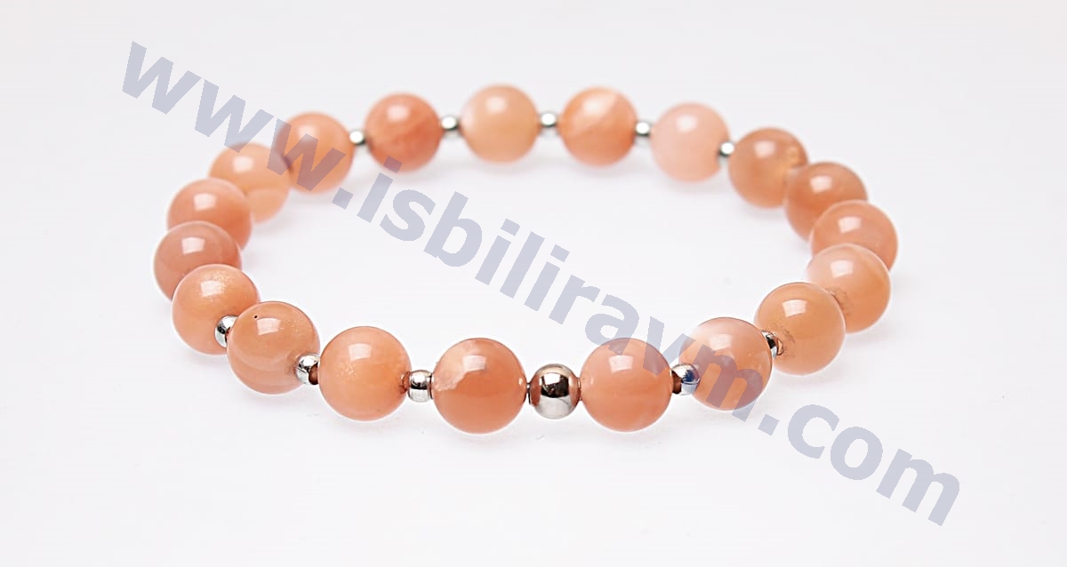 Bu güneş taşı bileklik güneş taşının en güzel tonlarından özel olarak şeçilerek üretilmiştir. Uzun çalışmalar sonucu orjinal taşlardan üretilen bu doğal taş bileklikleri sizler için ürettik. Ürünlerimizde orjinal doğal taşların yanı sıra estetikliğini arttırmak amacıyla bazı süsleme aparatları kullanılmış ve ürünlerin estetik görünümleri arttırılmıştır. Kullanılan bu aparatlar oksitli metal ve  dökümden üretilmiştir, kimyasal bir elementle temasta bulunmadığı taktirde kararmalara karşı uzun süreli dayanıklı, sağlamdır. Ayrıca orjinal güneş taşı bilekliklerimiz firmamızın özel olarak üretmiş olduğu daha önce doğal taşlarda ip kesme problemini ortadan kaldırmak için kullanılan kopma ve dağılmalara karşı dayanıklı, kopmayan taş ipi olan misina lastiğine dizilmiştir. Normal kullanımda bu ip oldukça dayanıklı esnek ve uzun ömürlüdür. Bu özellikleriyle doğal taşlı bileklikleri uzun süreler rahatlıkla kullanabilirsiniz. Bu doğal taşlı bileklikleri hem estetik görünmek için takı olarak hemde doğal taşların muhteşem enerji ve faydalarından yararlanabilmek için kullanabilirsiniz. Bu ürün orjinal güneş taşından üretildiği için güneş taşının şu psikolojik ve fiziksel faydalara sahiptir ; güneş taşı kalbi koruyan ve kalp rahatsılıklarının iyleşmesine yardımcı olan bir doğal taş türüdür. Bel, omuz ve sırt gibi bir çok ağrıya iyi gelen bir taştır. Kan dolaşımını düzenler ve kan dolaşımına bağlı olarak oluşan rahatsılıkların tedavisine yardımcı olan bir doğal taştır. Karaciğer, safra kesesi ve bağırsaklar için olumlu faydaları olduğu bilinmektetir. Strese karşı koruma sağlar. Vücutta bulunan kötü negatif elektirikten kurtulmamıza yardımcı olur. Hep olumlu düşünmemize yardımcı olur. Yaşama sevincimizi arttırarak hayatımızda olumlu kararlar vermemize yardımcı olur. Taşı kullanan kişiye karşı, çevresindeki insanların güven duygusunu arttırarak güvenilir bir kişi olarak gözükmemize yardımcı olan bir doğal taştır. Enerjisi çok güçlü bir taştır.