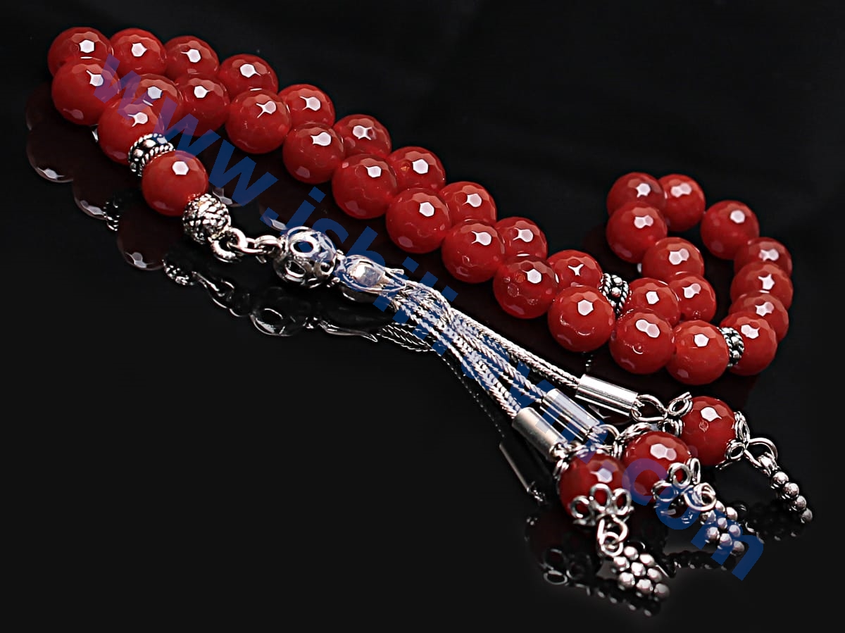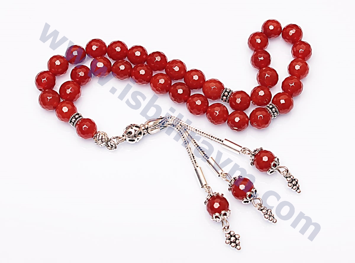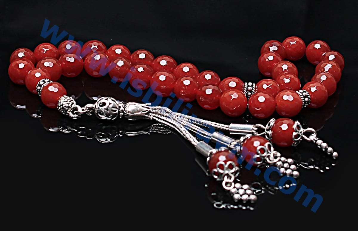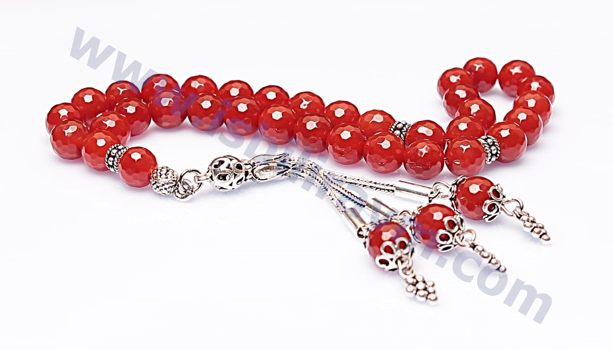 Bu akik doğal taş tesbih akik taşının en güzel tonlarından özel olarak şeçilerek üretilmiştir. Bu akik taşından üretilmiş olan tesbihin püskülü, imameleri, ayracı hiçbir yerde bulamıyacağınız model ve tasarımda olup, bu akik taşı tesbihler firmamızın bizzat tasarladığı modelde üretilmiştir. Ürünlerimizde orjinal doğal taşların yanı sıra estetikliğini arttırmak amacıyla bazı süsleme tesbih aparatları kullanılmış ve ürünlerin estetik görünümleri arttırılmıştır.  Kullanılan bu aparatlar 925 Ayar birinci kalite gümüşten üretilmiştir. Ayrıca orijinal akik taşı tesbihler firmamızın özel olarak üretmiş olduğu  doğal taş tesbihlerde ip kesme problemini ortadan kaldırmak için kullanılan kopma ve dağılmalara karşı dayanıklı, kopmayan taş ipi olan elastik misina tarzı özel lastik ipe dizilmiştir. Normal kullanımda bu ip oldukça dayanıklı esnek ve uzun ömürlüdür. Bu özellikleriyle ürünlerimizi ip kopması, tesbih dağılması gibi problemleri yaşamadan rahatlıkla uzun süreler kullanabilirsiniz. Sizlerede özel tasarım ve dayanıklı özel ipiyle üretilmiş, akik taşlı tesbih satın almanızı tavsiye ederiz.  Ayrıca akik taşı tesbih fiyatı da toptan fiyatına yakın uygun fiyattadır. Bu doğal taş tesbihleri hem sallamak hemde stres atmak için çekerek kullanabilirsiniz. Ayrıca bu tesbihlerin tane sayısı 33 olduğundan bu tesbihleri zikir çekmek amaçlı veya namazlarda tesbih çekmek amaçlı da kullanabilirsiniz. Çok amaçlı kullanabileceğiniz bu tesbihleri aynı zamanda muhteşem enerji ve faydalarından yararlanabilmek için de kullanabilirsiniz. Bu ürün orijinal akik taşından üretildiği için akik taşının şu psikolojik ve fiziksel faydalara sahiptir ; Çağımızın en büyük sorunlarından olan strese karşı iyi geldiği tespit edilmiştir. Akıl ve mantık gücümüzün gelişmesini sağlar. Nazara karşı korunmamızı sağlar. Hamilelik sürecinde anne bebek sağlığı için faydalı olduğu tespit edilmiştir. Kan dolaşımını düz
