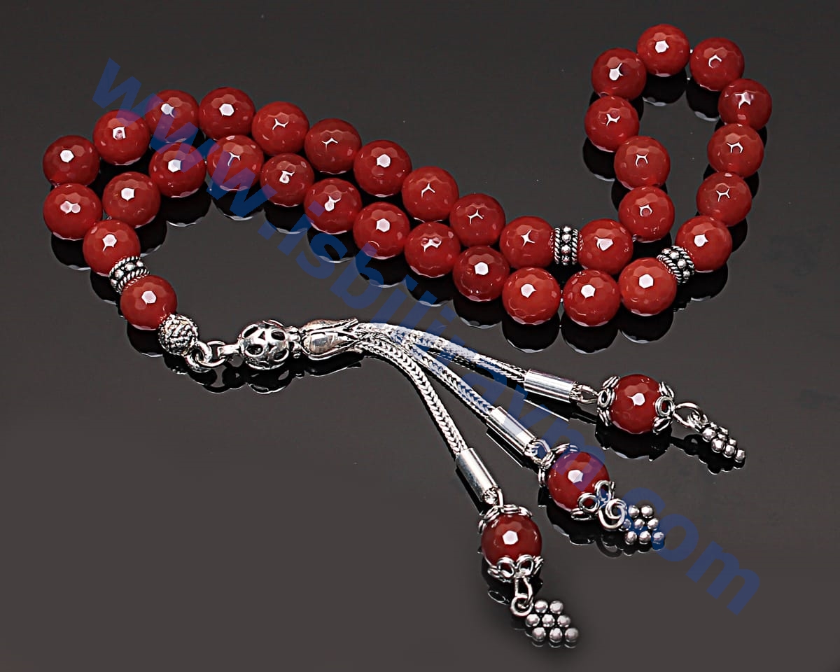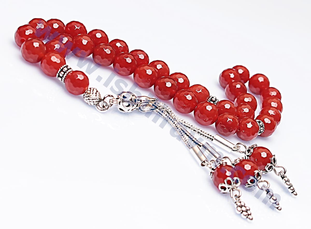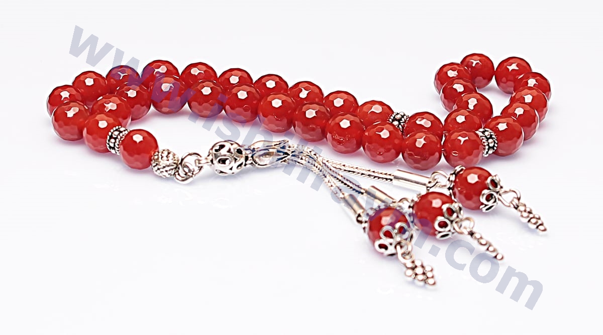 Bu akik doğal taş tesbih akik taşının en güzel tonlarından özel olarak şeçilerek üretilmiştir. Bu akik taşından üretilmiş olan tesbihin püskülü, imameleri, ayracı hiçbir yerde bulamıyacağınız model ve tasarımda olup, bu akik taşı tesbihler firmamızın bizzat tasarladığı modelde üretilmiştir. Ürünlerimizde orjinal doğal taşların yanı sıra estetikliğini arttırmak amacıyla bazı süsleme tesbih aparatları kullanılmış ve ürünlerin estetik görünümleri arttırılmıştır.  Kullanılan bu aparatlar 925 Ayar birinci kalite gümüşten üretilmiştir. Ayrıca orijinal akik taşı tesbihler firmamızın özel olarak üretmiş olduğu  doğal taş tesbihlerde ip kesme problemini ortadan kaldırmak için kullanılan kopma ve dağılmalara karşı dayanıklı, kopmayan taş ipi olan elastik misina tarzı özel lastik ipe dizilmiştir. Normal kullanımda bu ip oldukça dayanıklı esnek ve uzun ömürlüdür. Bu özellikleriyle ürünlerimizi ip kopması, tesbih dağılması gibi problemleri yaşamadan rahatlıkla uzun süreler kullanabilirsiniz. Sizlerede özel tasarım ve dayanıklı özel ipiyle üretilmiş, akik taşlı tesbih satın almanızı tavsiye ederiz.  Ayrıca akik taşı tesbih fiyatı da toptan fiyatına yakın uygun fiyattadır. Bu doğal taş tesbihleri hem sallamak hemde stres atmak için çekerek kullanabilirsiniz. Ayrıca bu tesbihlerin tane sayısı 33 olduğundan bu tesbihleri zikir çekmek amaçlı veya namazlarda tesbih çekmek amaçlı da kullanabilirsiniz. Çok amaçlı kullanabileceğiniz bu tesbihleri aynı zamanda muhteşem enerji ve faydalarından yararlanabilmek için de kullanabilirsiniz. Bu ürün orijinal akik taşından üretildiği için akik taşının şu psikolojik ve fiziksel faydalara sahiptir ; Çağımızın en büyük sorunlarından olan strese karşı iyi geldiği tespit edilmiştir. Akıl ve mantık gücümüzün gelişmesini sağlar. Nazara karşı korunmamızı sağlar. Hamilelik sürecinde anne bebek sağlığı için faydalı olduğu tespit edilmiştir. Kan dolaşımını düz