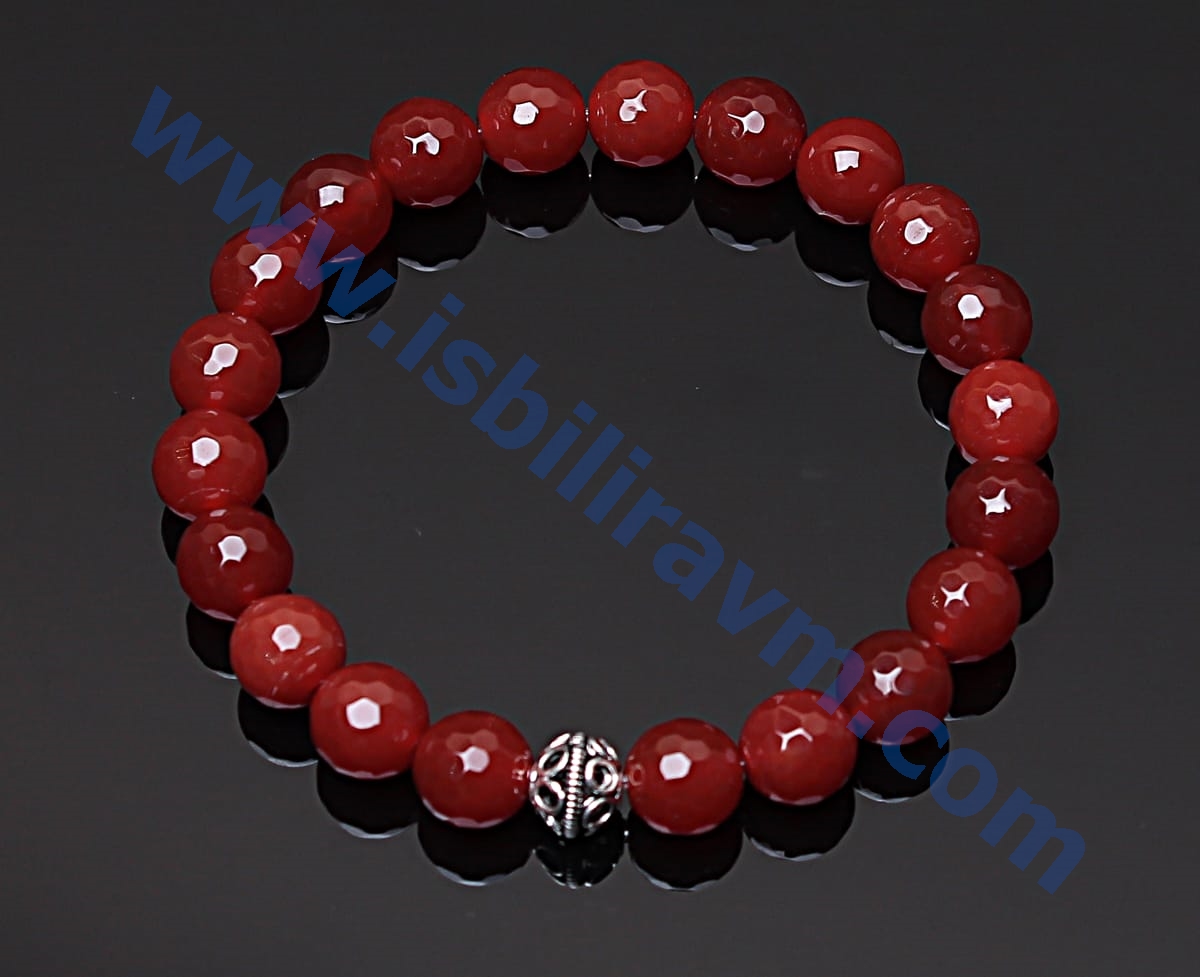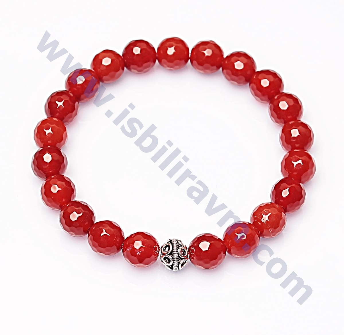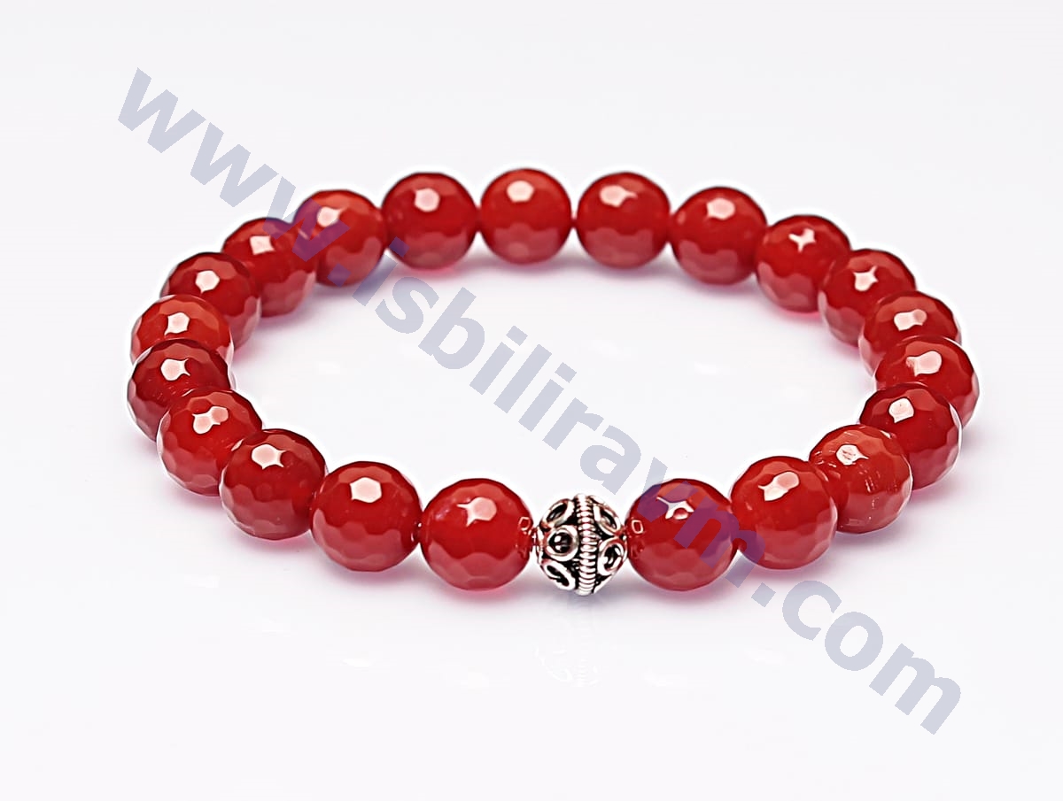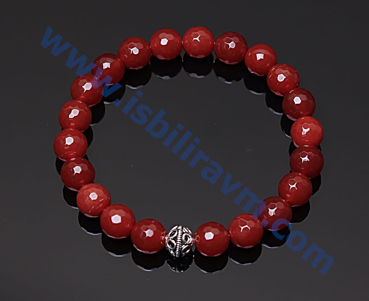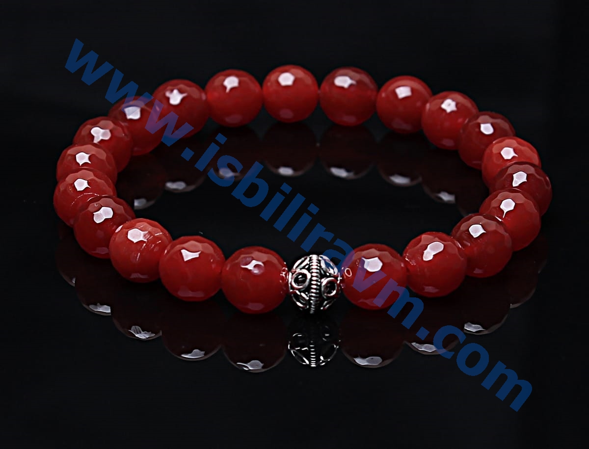 Bu akik bileklik, akik taşının en güzel tonlarından özel olarak şeçilerek üretilmiştir. Uzun çalışmalar sonucu orjinal taşlardan üretilen bu doğal taş bileklikleri sizler için ürettik. Ürünlerimizde orjinal doğal taşların yanı sıra estetikliğini arttırmak amacıyla bazı süsleme aparatları kullanılmış ve ürünlerin estetik görünümleri arttırılmıştır. Ayrıca orjinal doğal taşlı bilekliklerimiz firmamızın özel olarak üretmiş olduğu daha önce doğal taşlarda ip kesme problemini ortadan kaldırmak için kullanılan kopma ve dağılmalara karşı dayanıklı, kopmayan taş ipi olan misina lastiğine dizilmiştir. Normal kullanımda bu ip oldukça dayanıklı esnek ve uzun ömürlüdür. Bu özellikleriyle doğal taşlı bileklikleri uzun süreler rahatlıkla kullanabilirsiniz. Bu doğal taşlı bileklikleri hem estetik görünmek için takı olarak hemde doğal taşların muhteşem enerji ve faydalarından yararlanabilmek için kullanabilirsiniz. Bu ürün orijinal akik taşından üretildiği için akik taşının şu psikolojik ve fiziksel faydalara sahiptir ; Çağımızın en büyük sorunlarından olan strese karşı iyi geldiği tespit edilmiştir. Akıl ve mantık gücümüzün gelişmesini sağlar. Nazara karşı korunmamızı sağlar. Hamilelik sürecinde anne bebek sağlığı için faydalı olduğu tespit edilmiştir. Kan dolaşımını düzenlediği ve tansiyonu dengeleyici özelliğinin olduğuda tespit edilmiştir.Damarları koruyucu güçlendirici etkileri tespit edilmiştir. Cilt rahatsızlıklarına iyi geldiği söylenir. Dişler ve kemikler için faydalıdır. Taşıyan kişiyi olumsuzluklardan koruyucu etkisi vardır. Bu özelliği hadislerlede kanıtlanmışdır. Uykusuzluklara ve karabasanlara iyi gelir. Metebolizmamızı hızlandırır. Korkaklığa karşı iyi geldiği bilinir. Çevreyle uyumu arttırır. Akik taşı kendinizi kötü hissettiğinizde olayların iyi yönlerini görmenizi sağlar. Negatif enerjiden insanı arındırır ve insana iyilik mutluluk verir.