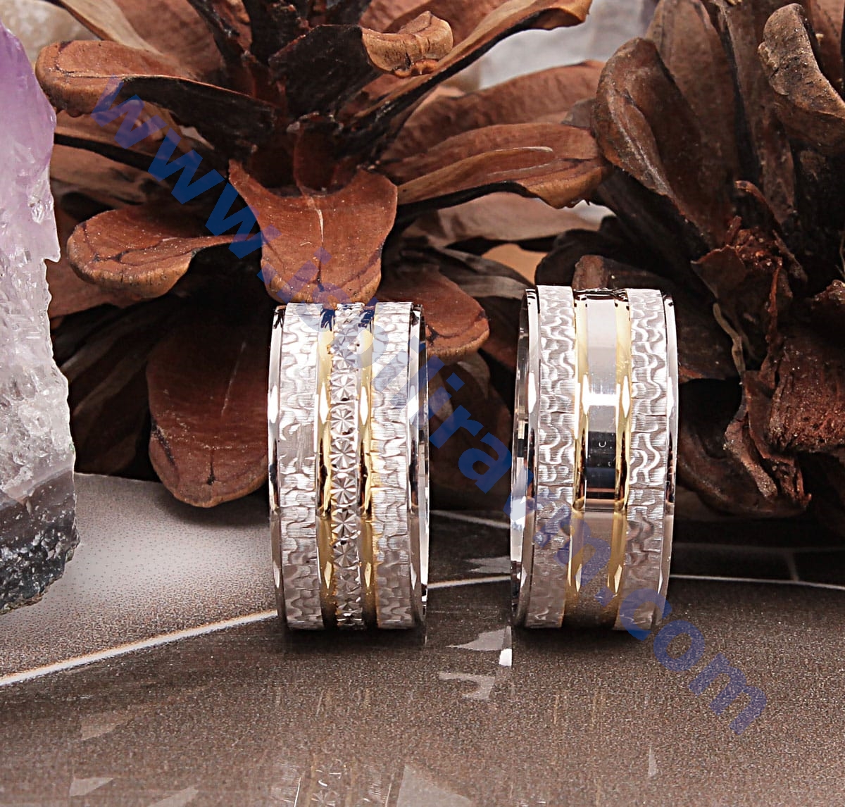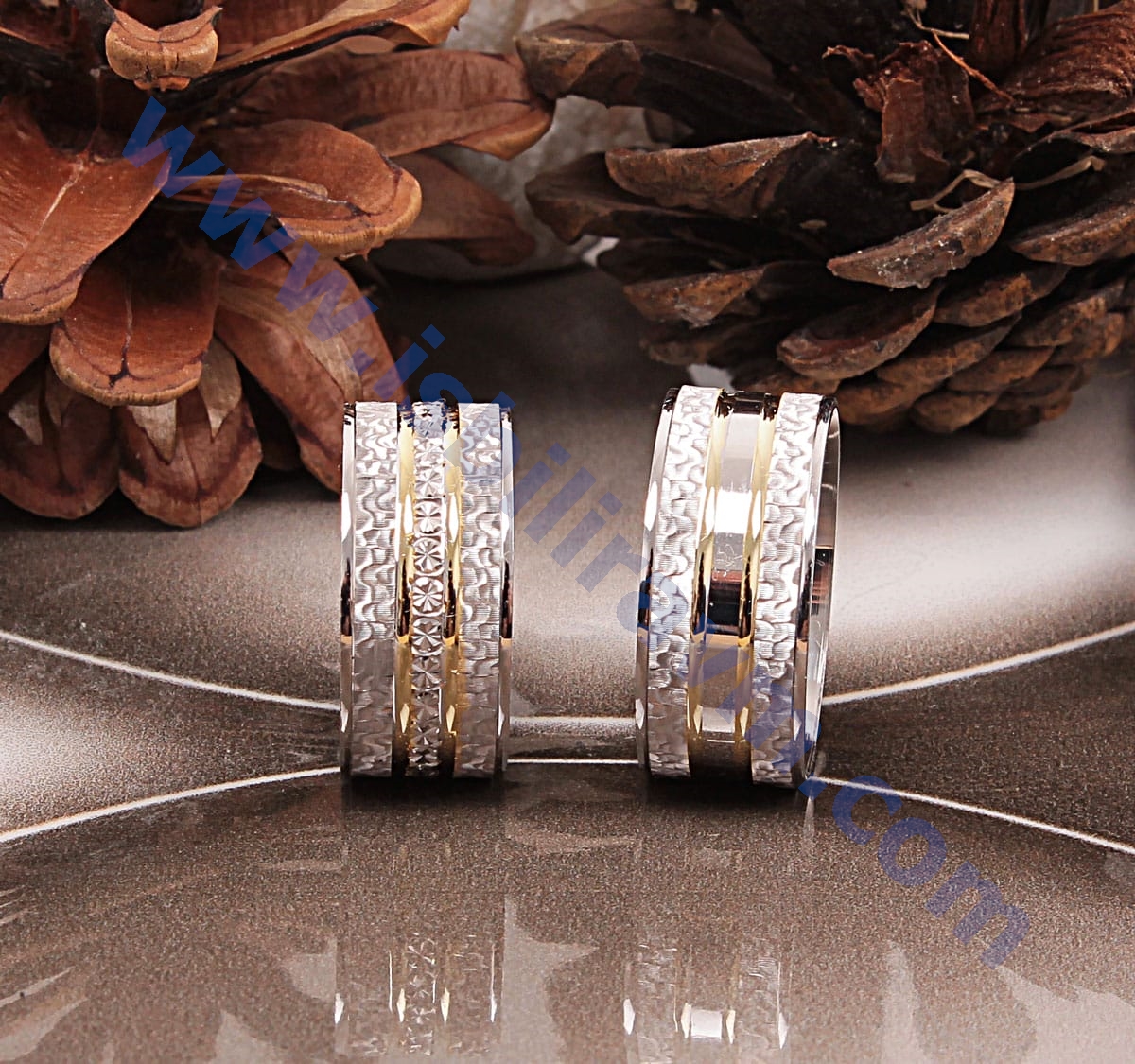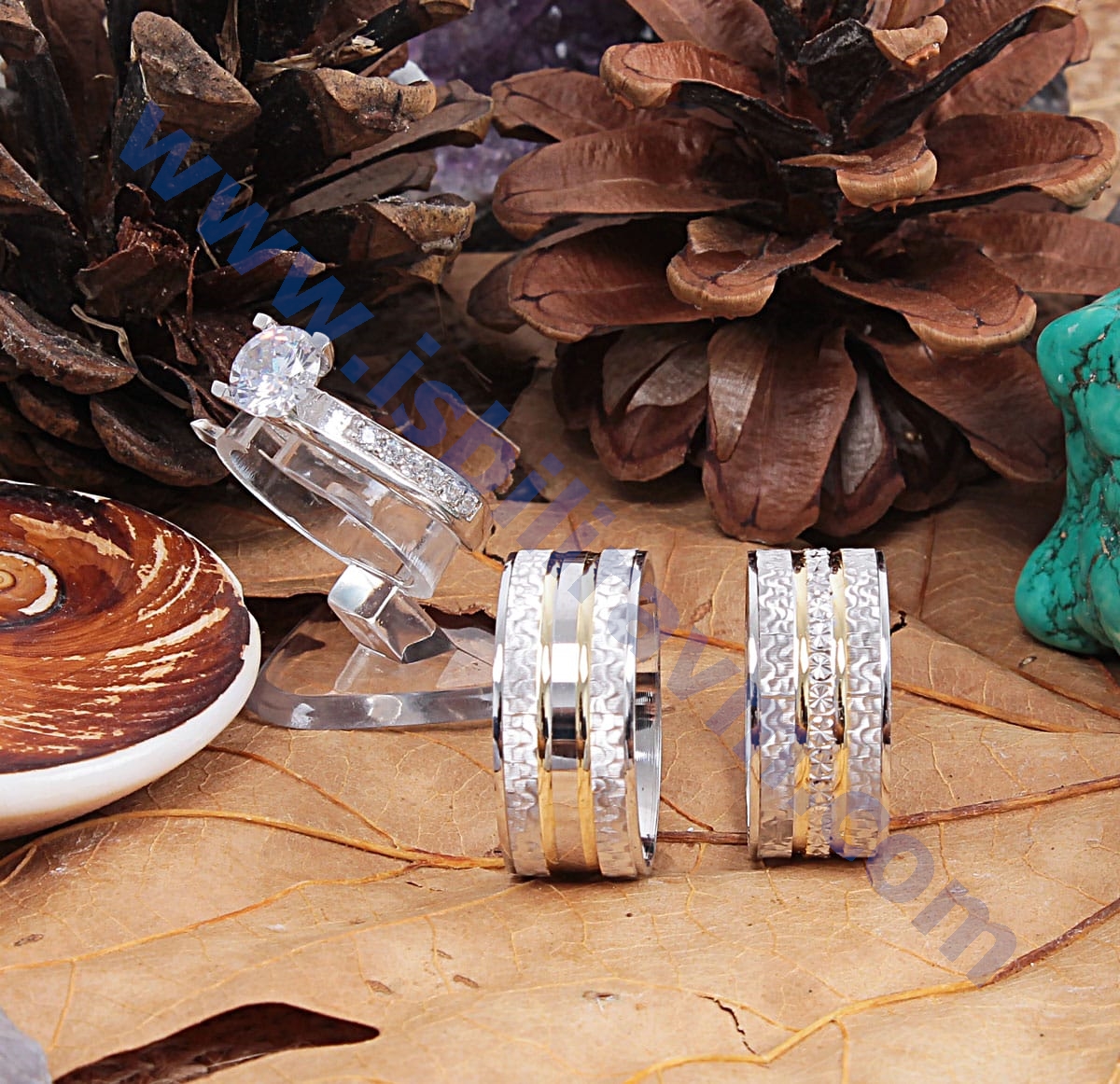 alyans ve bir tek taştan oluşmaktatır. Yüzüklerin tamamı birinci kalite el