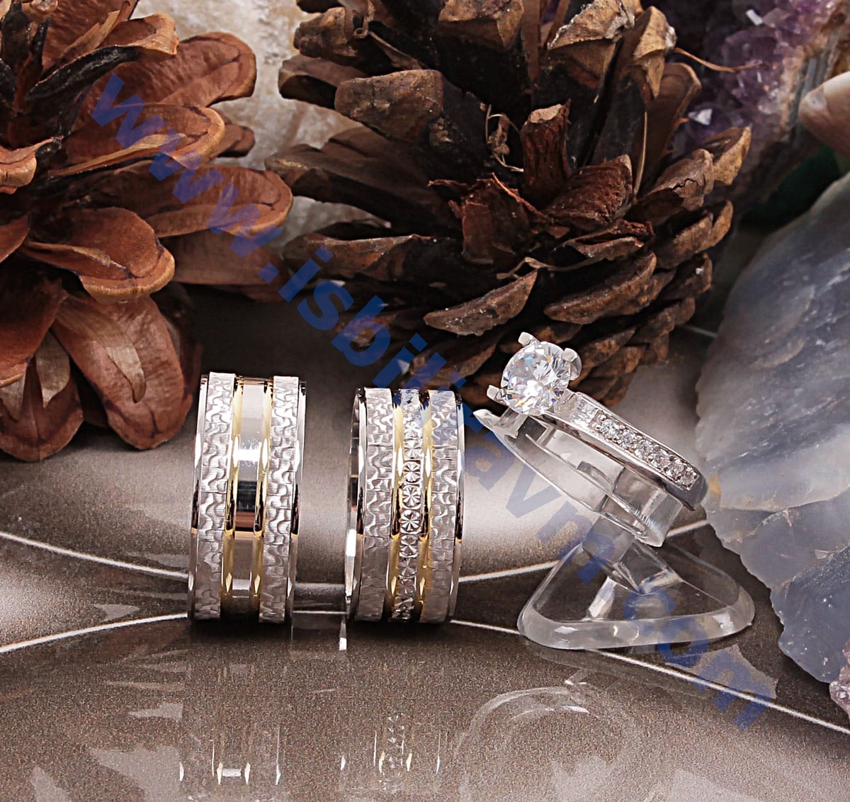 - NOT: ÜRÜN BAY BAYAN OLMAK ÜZERE İKİ ALYANS BİR TEK TAŞ YÜZÜKTEN OLUŞMAKTATIR. BU ÜÇ YÜZÜĞÜN FİYATIDIR.