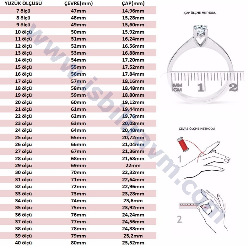 işçiliği 925 AYAR GÜMÜŞTÜR. Yüzük ölçünüzü resimdeki gibi hesaplayarak alttaki