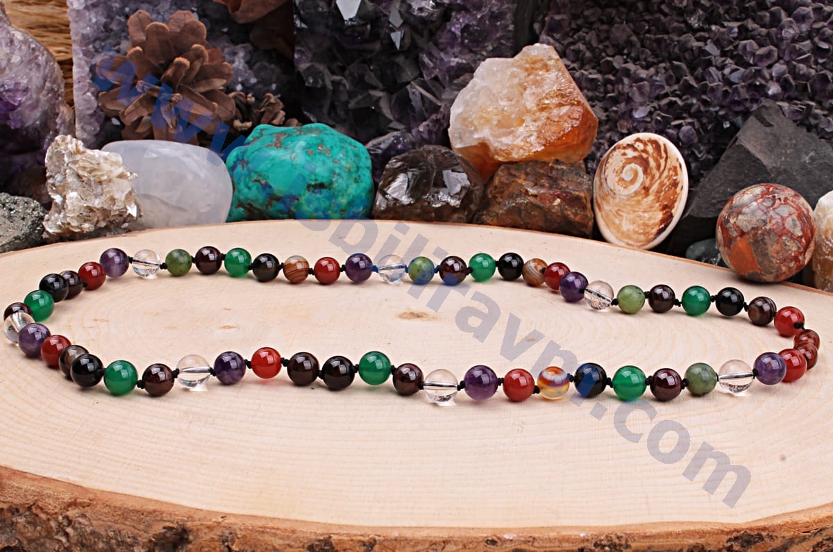 : Bu burç kolyesinde Lal, yeşim, akik, kristal kuvars ve ametist doğaltaş