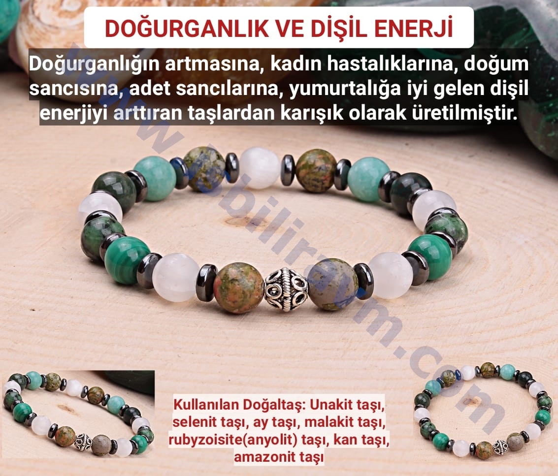 Doğurganlın artmasına, kadın hastalıklarına, doğum sancısına, adet sancılarına, yumurtalığa iyi gelen dişil enerjiyi arttıran taşlardan karışık olarak üretilmiştir.