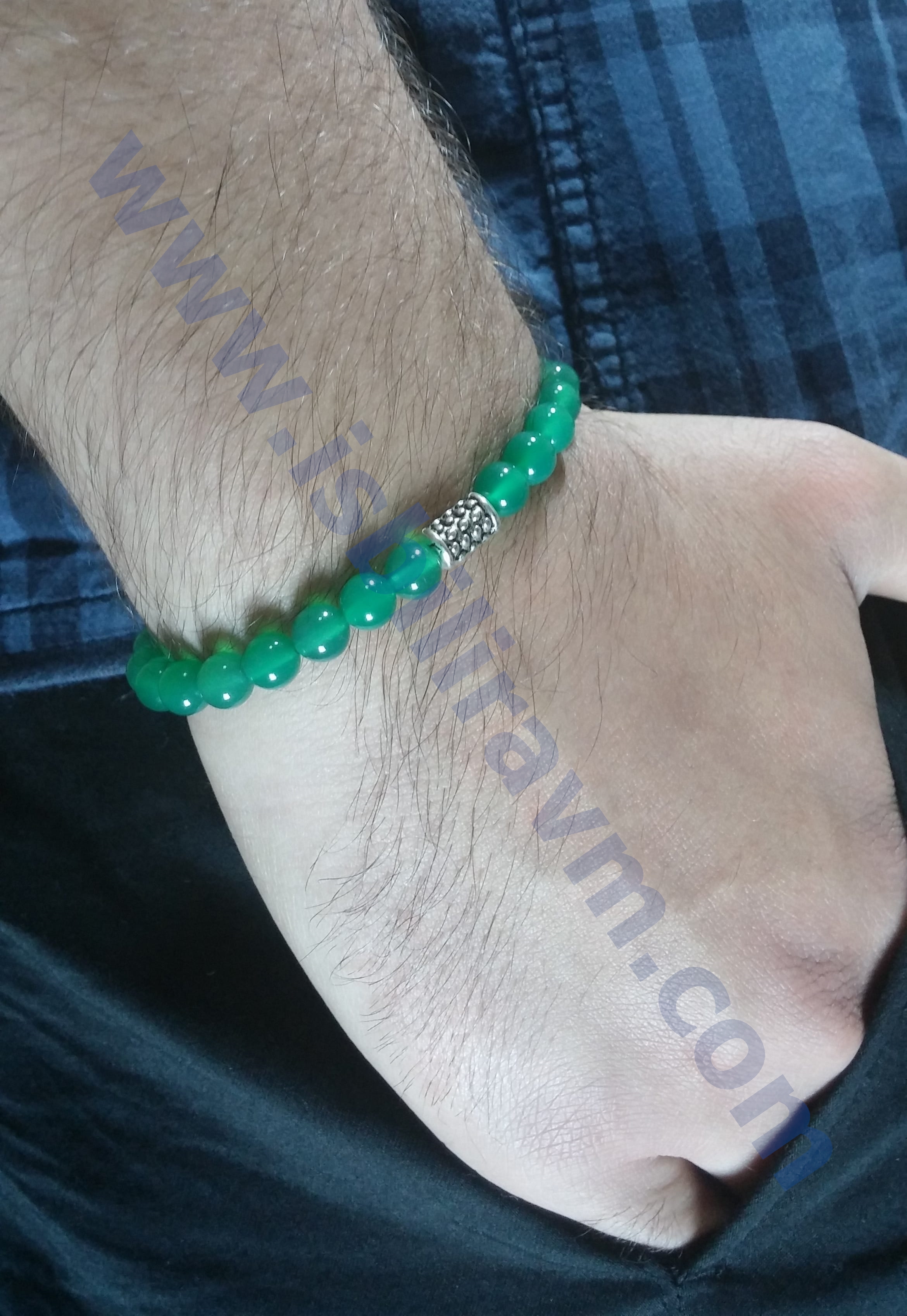 Bu akik taşı erkek bileklik akik taşının en güzel tonlarından özel olarak şeçilerek üretilmiştir. Uzun çalışmalar sonucu orijinal taşlardan üretilen bu erkek doğal taş bileklikleri sizler için ürettik. Ürünlerimizde orijinal doğal taşların yanı sıra estetikliğini arttırmak amacıyla bazı süsleme aparatları kullanılmış ve ürünlerin estetik görünümleri arttırılmıştır. Kullanılan bu aparatlar oksitli metal ve  dökümden üretilmiştir, kimyasal bir elementle temasta bulunmadığı taktirde kararmalara karşı uzun süreli dayanıklı, sağlamdır. Ayrıca orijinal doğal taşlı erkek bilekliklerimiz firmamızın özel olarak üretmiş olduğu daha önce doğal taşlarda ip kesme problemini ortadan kaldırmak için kullanılan kopma ve dağılmalara karşı dayanıklı, kopmayan taş ipi olan misina lastiğine dizilmiştir. Normal kullanımda bu ip oldukça dayanıklı esnek ve uzun ömürlüdür. Bu özellikleriyle doğal taşlı erkek bileklikleri uzun süreler rahatlıkla kullanabilirsiniz. Bu doğal taşlı erkek bileklikleri hem estetik görünmek için takı olarak hemde doğal taşların muhteşem enerji ve faydalarından yararlanabilmek için kullanabilirsiniz. Bu ürün orijinal akik taşından üretildiği için akik taşının şu psikolojik ve fiziksel faydalara sahiptir ; Çağımızın en büyük sorunlarından olan strese karşı iyi geldiği tespit edilmiştir. Akıl ve mantık gücümüzün gelişmesini sağlar. Nazara karşı korunmamızı sağlar. Hamilelik sürecinde anne bebek sağlığı için faydalı olduğu tespit edilmiştir. Kan dolaşımını düzenlediği ve tansiyonu dengeleyici özelliğinin olduğuda tespit edilmiştir.Damarları koruyucu güçlendirici etkileri tespit edilmiştir. Cilt rahatsızlıklarına iyi geldiği söylenir. Dişler ve kemikler için faydalıdır. Taşıyan kişiyi olumsuzluklardan koruyucu etkisi vardır. Bu özelliği hadislerlede kanıtlanmışdır. Uykusuzluklara ve karabasanlara iyi gelir. Metebolizmamızı hızlandırır. Korkaklığa karşı iyi geldiği bilinir. Çevreyle uyumu arttırır. Akik taşı kendinizi kötü hissettiğinizde olayların iyi yönlerini görmenizi sağlar. Negatif enerjiden insanı arındırır ve insana iyilik mutluluk verir.