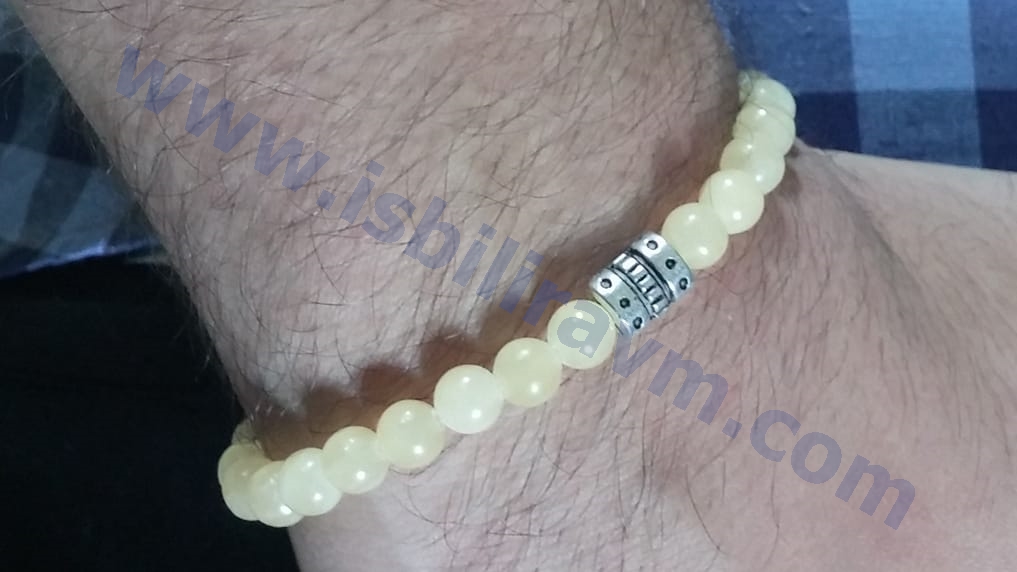 Bu kalsit taşı bileklik kalsit taşının en güzel tonlarından özel olarak şeçilerek üretilmiştir. Uzun çalışmalar sonucu orijinal taşlardan üretilen bu erkek doğal taş bileklikleri sizler için ürettik. Ürünlerimizde orijinal doğal taşların yanı sıra estetikliğini arttırmak amacıyla bazı süsleme aparatları kullanılmış ve ürünlerin estetik görünümleri arttırılmıştır. Kullanılan bu aparatlar oksitli metal ve  dökümden üretilmiştir, kimyasal bir elementle temasta bulunmadığı taktirde kararmalara karşı uzun süreli dayanıklı, sağlamdır. Ayrıca orijinal doğal taşlı erkek bilekliklerimiz firmamızın özel olarak üretmiş olduğu daha önce doğal taşlarda ip kesme problemini ortadan kaldırmak için kullanılan kopma ve dağılmalara karşı dayanıklı, kopmayan taş ipi olan misina lastiğine dizilmiştir. Normal kullanımda bu ip oldukça dayanıklı esnek ve uzun ömürlüdür. Bu özellikleriyle doğal taşlı erkek bileklikleri uzun süreler rahatlıkla kullanabilirsiniz. Bu doğal taşlı erkek bileklikleri hem estetik görünmek için takı olarak hemde doğal taşların muhteşem enerji ve faydalarından yararlanabilmek için kullanabilirsiniz. Bu ürün orijinal kalsit taşından üretildiği için kalsit taşının şu psikolojik ve fiziksel faydalara sahiptir ; kalsit taşı ortamdaki negatif enerjiyi temizlemek amacıyla kullanılan bir taştır.Kişinin iç huzura ulaşmasını sağlayıcı etkileri vardır.Öğrenme yeteneğini geliştirici etkileri vardır.Bu özelliğiyle özellikle öğrenciler için faydalıdır.Ayrıca çalışmayan şakraları harekete geçirerek çalışmasına yardımcı olucu etkileride vardır. Ayrıca Kalsit taşı çeşitli renklere dönebilen kalsiyum karbonat bir taştır.