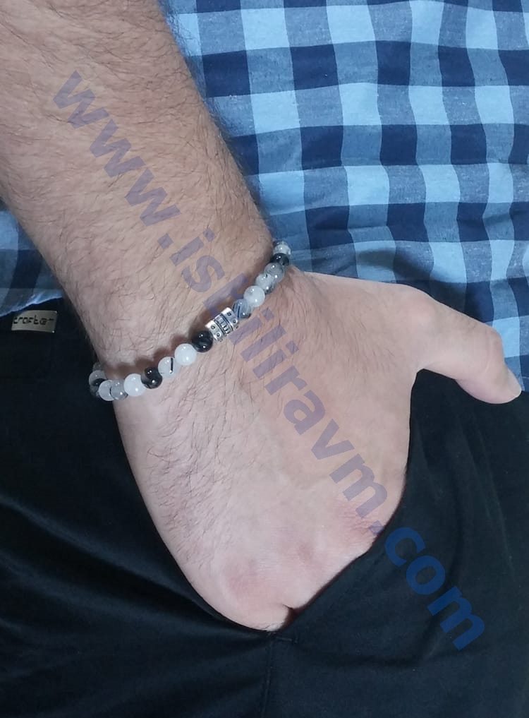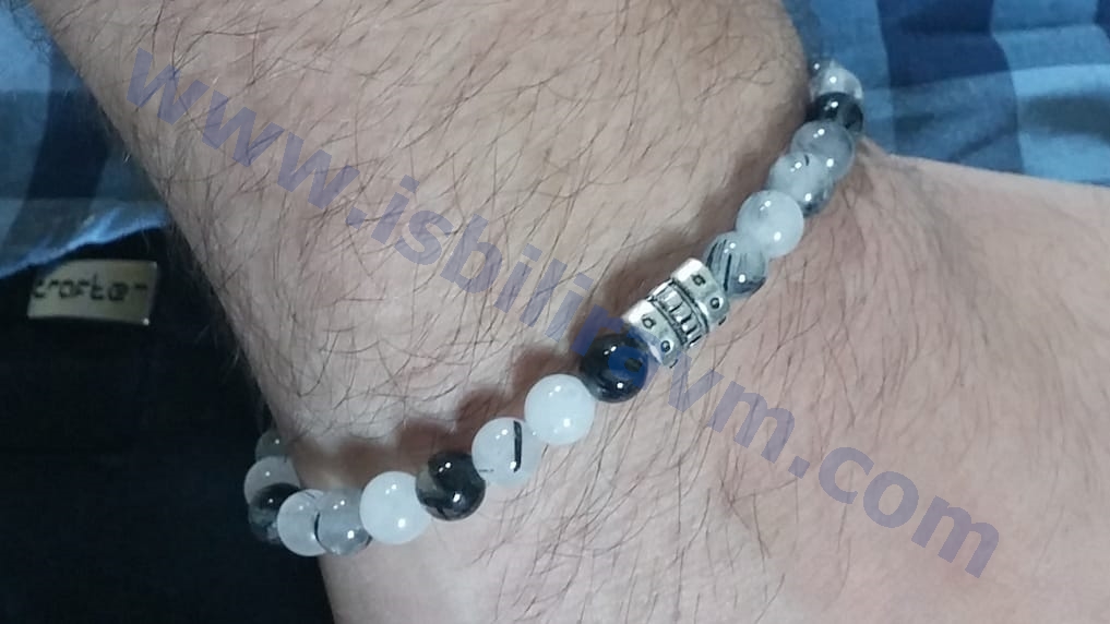 Bu rutil kuvars taşı bileklik rutil kuvars taşının en güzel tonlarından özel olarak şeçilerek üretilmiştir. Uzun çalışmalar sonucu orijinal taşlardan üretilen bu erkek doğal taş bileklikleri sizler için ürettik. Ürünlerimizde orijinal doğal taşların yanı sıra estetikliğini arttırmak amacıyla bazı süsleme aparatları kullanılmış ve ürünlerin estetik görünümleri arttırılmıştır. Kullanılan bu aparatlar oksitli metal ve  dökümden üretilmiştir, kimyasal bir elementle temasta bulunmadığı taktirde kararmalara karşı uzun süreli dayanıklı, sağlamdır. Ayrıca orijinal rutil kuvars taşı erkek bilekliklerimiz firmamızın özel olarak üretmiş olduğu daha önce doğal taşlarda ip kesme problemini ortadan kaldırmak için kullanılan kopma ve dağılmalara karşı dayanıklı, kopmayan taş ipi olan misina lastiğine dizilmiştir. Normal kullanımda bu ip oldukça dayanıklı esnek ve uzun ömürlüdür. Bu özellikleriyle doğal taşlı erkek bileklikleri uzun süreler rahatlıkla kullanabilirsiniz. Bu doğal taşlı erkek bileklikleri hem estetik görünmek için takı olarak hemde doğal taşların muhteşem enerji ve faydalarından yararlanabilmek için kullanabilirsiniz. Bu ürün orijinal rutil kuvars taşından üretildiği için rutil kuvars taşının şu psikolojik ve fiziksel faydalara sahiptir ; Uyumaya yardımcı olur. Hücreleri yenileyici etkileriyle yaşlanmayı geciktirir. Ruhsal ve akılsal denge oluşturur. Depresyon , fobiler, kararsızlık, cinsel isteksizlik, halsizlik gibi durumları ortadan kaldırdığı bilinmektedir. Aklı ve zekayı kuvvetlendirir. Vücuttaki negatif enerjiyi pozitife çevirir ve kişiye mutluluk verir. Aşkın, yaşama sevincinin ve cinsel gücün sembolü olarak bilinir. Güneş ışığını kendisinde toplayarak anti deprasan etkiye sahip bir taş haline gelir. Enerji yükseltici bir taş olarak bilinir. Huzur, motivasyon ve iç düzen sağlar. Kronik bronşit ve astıma iyi gelen bir taştır. Cep telefonu, televzyon gibi  cihazlardan yayılan radyasyondan korur. Baş ağrılarını azaltır. Kan dolaşımı ve sindirim sistemine faydalıdır. Göz hastalıkları için faydalıdır. Gözlerin daha net görmesini sağlar.