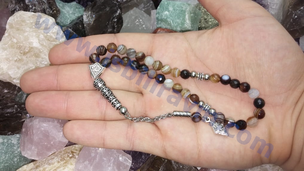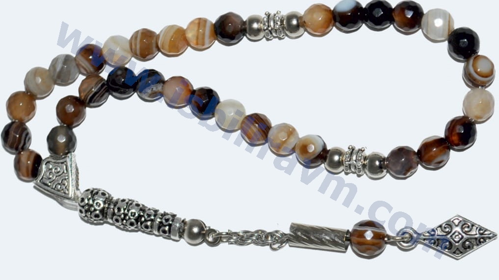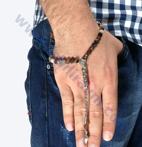 Bu akik doğal taş tesbih akik taşının en güzel tonlarından özel olarak şeçilerek üretilmiştir. Bu akik taşından üretilmiş olan tesbihin püskülü, imameleri, ayracı hiçbir yerde bulamıyacağınız model ve tasarımda olup, bu akik taşı tesbihler firmamızın bizzat tasarladığı modelde üretilmiştir. Ürünlerimizde orijinal doğal taşların yanı sıra estetikliğini arttırmak amacıyla bazı süsleme tesbih aparatları kullanılmış ve ürünlerin estetik görünümleri arttırılmıştır. Alacağınız tesbihte eğer farklı tesbih aparatı kullanmak isterseniz tesbih malzemeleri kategorimizden püskül veya diğer malzemeleri seçip istediğiniz malzemede tesbihinizi dizdirebilirsiniz, bu isteğinizi sipariş notunda veya irtibat numaralarımızdan bize ulaşarak talep edebilirsiniz. Kullanılan bu aparatlar oksitli metal ve dökümden üretilmiştir, kimyasal bir elementle temasta bulunmadığı taktirde kararmalara karşı uzun süreli dayanıklı ve sağlamdır. Ayrıca orijinal akik taşı tesbihler firmamızın özel olarak üretmiş olduğu doğal taş tesbihlerde ip kesme problemini ortadan kaldırmak için kullanılan kopma ve dağılmalara karşı dayanıklı, kopmayan taş ipi olan elastik misina tarzı özel lastik ipe dizilmiştir. Normal kullanımda bu ip oldukça dayanıklı esnek ve uzun ömürlüdür. Bu özellikleriyle ürünlerimizi ip kopması, tesbih dağılması gibi problemleri yaşamadan rahatlıkla uzun süreler kullanabilirsiniz. Ayrıca bu özel ipin esnek elastik yapısı itibarı ile; tesbihimiz her bileğe rahatlıkla geçmekte ve böylece zaman zamanda tesbihi bileğinize takarak bileklik olarak da kullanabilirsiniz. Sizlerede özel tasarım ve dayanıklı özel ipiyle üretilmiş, akik taşı tesbih satın almanızı tavsiye ederiz. Ayrıca akik taşı tesbih fiyatları da toptan fiyatına yakın uygun fiyattatır. Bu doğal taş tesbihleri hem sallamak hemde stres atmak için çekerek kullanabilirsiniz. Ayrıca bu tesbihlerin tane sayısı 33 olduğundan bu tesbihleri zikir çekmek amaçlı veya namazlarda tesbih çekmek amaçlı da kullanabilirsiniz. Çok amaçlı kullanabileceğiniz bu tesbihleri aynı zamanda muhteşem enerji ve faydalarından yararlanabilmek için de kullanabilirsiniz. Bu ürün orijinal akik taşından üretildiği için akik taşının şu psikolojik ve fiziksel faydalara sahiptir ; Çağımızın en büyük sorunlarından olan strese karşı iyi geldiği tespit edilmiştir. Akıl ve mantık gücümüzün gelişmesini sağlar. Nazara karşı korunmamızı sağlar. Hamilelik sürecinde anne bebek sağlığı için faydalı olduğu tespit edilmiştir. Kan dolaşımını düz