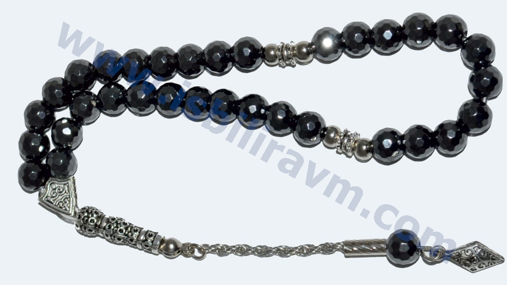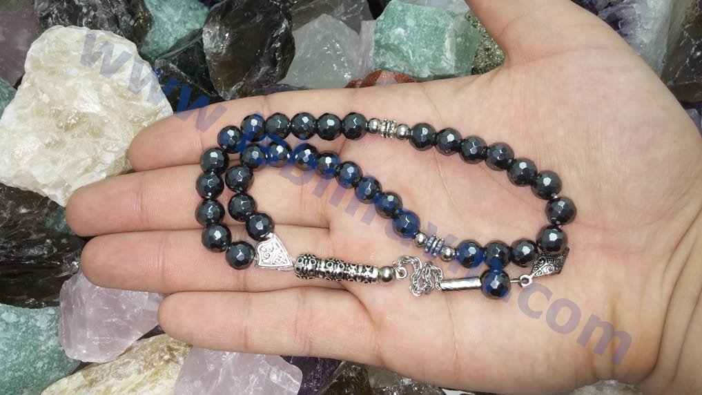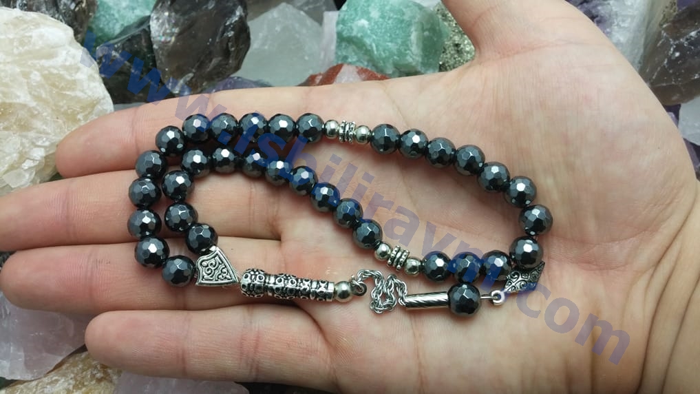 Bu hematit doğal taş tesbih hematit taşının en güzel tonlarından özel olarak şeçilerek üretilmiştir. Bu hematit taşından üretilmiş olan tesbihin püskülü, imameleri, ayracı hiçbir yerde bulamıyacağınız model ve tasarımda olup, bu hematit taşı tesbihler firmamızın bizzat tasarladığı modelde üretilmiştir. Ürünlerimizde orijinal doğal taşların yanı sıra estetikliğini arttırmak amacıyla bazı süsleme tesbih aparatları kullanılmış ve ürünlerin estetik görünümleri arttırılmıştır. Alacağınız tesbihte eğer farklı tesbih aparatı kullanmak isterseniz tesbih malzemeleri kategorimizden püskül veya diğer malzemeleri seçip istediğiniz malzemede tesbihinizi dizdirebilirsiniz, bu isteğinizi sipariş notunda veya irtibat numaralarımızdan bize ulaşarak talep edebilirsiniz. Kullanılan bu aparatlar oksitli metal ve dökümden üretilmiştir, kimyasal bir elementle temasta bulunmadığı taktirde kararmalara karşı uzun süreli dayanıklı ve sağlamdır. Ayrıca orijinal hematit tesbihlerimiz firmamızın özel olarak üretmiş olduğu doğal taş tesbihlerde ip kesme problemini ortadan kaldırmak için kullanılan kopma ve dağılmalara karşı dayanıklı, kopmayan taş ipi olan elastik misina tarzı özel lastik ipe dizilmiştir. Normal kullanımda bu ip oldukça dayanıklı esnek ve uzun ömürlüdür. Bu özellikleriyle ürünlerimizi ip kopması, tesbih dağılması gibi problemleri yaşamadan rahatlıkla uzun süreler kullanabilirsiniz. Sizlerede özel tasarım ve dayanıklı özel ipiyle üretilmiş, hematit tesbih satın almanızı tavsiye ederiz. Ayrıca hematit tesbih fiyatları da toptan fiyatına yakın uygun fiyattatır. Bu doğal taş tesbihleri hem sallamak hemde stres atmak için çekerek kullanabilirsiniz. Ayrıca bu tesbihlerin tane sayısı 33 olduğundan bu tesbihleri zikir çekmek amaçlı veya namazlarda tesbih çekmek amaçlı da kullanabilirsiniz. Çok amaçlı kullanabileceğiniz bu tesbihleri aynı zamanda muhteşem enerji ve faydalarından yararlanabilmek için de kullanabilirsiniz. Bu ürün orijinal hematit taşından üretildiği için hematit taşının şu psikolojik ve fiziksel faydalara sahiptir ; Bircok taşta olduğu gibi hematit taşıda çağımızın en büyük sorunlarından olan strese ve gerginliğe karşı koruma sağlar. İnsana mutluluk, pozitif düşünme ve cesaret verici etkileri vardır. Hematit taşı kararsızlıklarımıza iyi gelir. Seçimlerimizde en iyisini bulmamıza yardımcı olur. Hematit taşı bel soğukluğuna faydalıdır. Vücuttaki kan dolaşımını düzenler ve buna bağlı olarakta tansiyona iyi gelir. Hafızayı kuvvetlendirir. Eklemlerdeki romatizmalara iyi gelir. Hematit taşı saç dökülmelerini engeller. Saçlarımızın güçlenmesini ve gürleşmesini sağlar. Aşırı duygulanma heycanlanmaya iyi gelir. Eenerji ve canlılık verici etkileri vardır.
