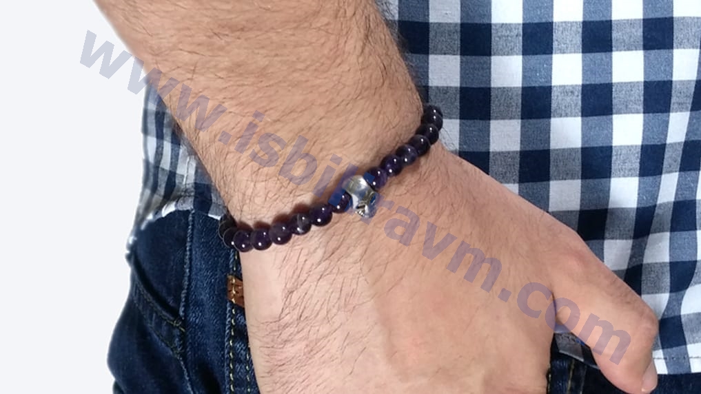 Bu ametist taşı bileklik ametist taşının en güzel tonlarından özel olarak şeçilerek üretilmiştir. Uzun çalışmalar sonucu orijinal taşlardan üretilen bu erkek doğal taş bileklikleri sizler için ürettik. Ürünlerimizde orijinal doğal taşların yanı sıra estetikliğini arttırmak amacıyla bazı süsleme aparatları kullanılmış ve ürünlerin estetik görünümleri arttırılmıştır. Kullanılan bu aparatlar oksitli metal ve dökümden üretilmiştir, kimyasal bir elementle temasta bulunmadığı taktirde kararmalara karşı uzun süreli dayanıklı, sağlamdır. Ayrıca orijinal doğal taşlı erkek bilekliklerimiz firmamızın özel olarak üretmiş olduğu daha önce doğal taşlarda ip kesme problemini ortadan kaldırmak için kullanılan kopma ve dağılmalara karşı dayanıklı, kopmayan taş ipi olan misina lastiğine dizilmiştir. Normal kullanımda bu ip oldukça dayanıklı esnek ve uzun ömürlüdür. Bu özellikleriyle doğal taşlı ametist bileklikleri uzun süreler rahatlıkla kullanabilirsiniz. Bu doğal taşlı erkek bileklikleri hem estetik görünmek için takı olarak hemde doğal taşların muhteşem enerji ve faydalarından yararlanabilmek için kullanabilirsiniz. Bu ürün orijinal ametist taşından üretildiği için ametist taşının şu psikolojik ve fiziksel faydalara sahiptir ; Ametist taşı aşk ve sevgi taşı olarak bilinmektedir. Negatif elektrik yükünü topladığından ve taşıdığından bedendeki fazla elektrik yükünü toplayarak beyin gücünü yükseltici etkileri tespit edilmiştir. Topladığı negatif elektrik yükünü pozitif elektrik yüküne çevirir. Depresyona karşı iyi gelir. Şifa bakımından en güçlü taşlardan olan ametist taşı cilt rahatsızlıklarına, alerjik, migren, baş ağrılarına ve kalp rahatsızlıklarına şifalıdır. Uykusuzluk çekenlerin uykusuzluklarına faydalıdır. Ametist taşı enerji dolu bir taşdır. Bulundurduğu bu enerjiyle taşı üzerinde taşıyan kişiyi canlandırırcı etkisi vardır. Üzerinizde rahatca sürekli taşıyabileceginiz bir taşdır. Ametist taşı'nın çevreye yaydığı enerji faydalıdır ve olumsuzluklardan kişiyi kurtarır. Ametist taşı'nın özellikle düşman gördüğünüz kişilerin yanındayken üzerinizde bulundurmanız faydalıdır. Çünkü ametist taşı olumsuz enerjileri pozitif enerjiye çevireceğinden ortamdaki kötü niyetli kişilerinde düşüncelerini olumlu yapar. Enerjisi huzur vericidir ve sinir sistemine iyi gelir. Kişiye iç huzur verir. Kararsızlıkdan kurtarır ve kararlarımızı netleşdirir. Uykusuzluk çeken kişiler uykudan önce bir müddet ametist taşını elinizde tutun ve yattığınız yastığın altına koyun ve yatın. Ametist taşı eklem ağrılarına, kan dolaşımına faydalıdır. Vücudu zararlı toksinlerden arındırır ve kişiyi hayata daha sağlıklı yönlendirir. Pembe kuvarsla kullanıldığında aklı güçlendirdiği ve k