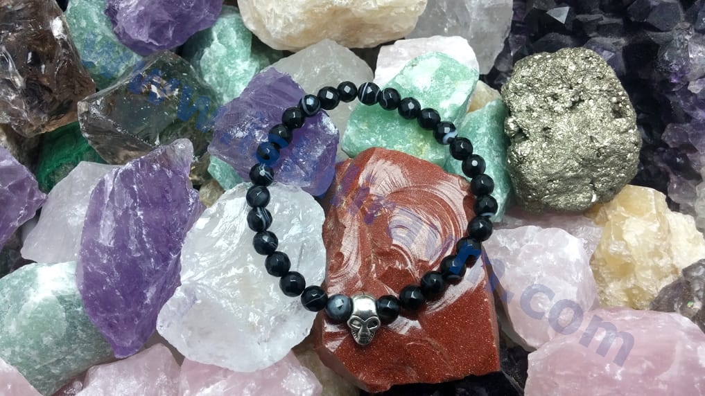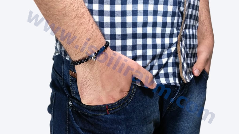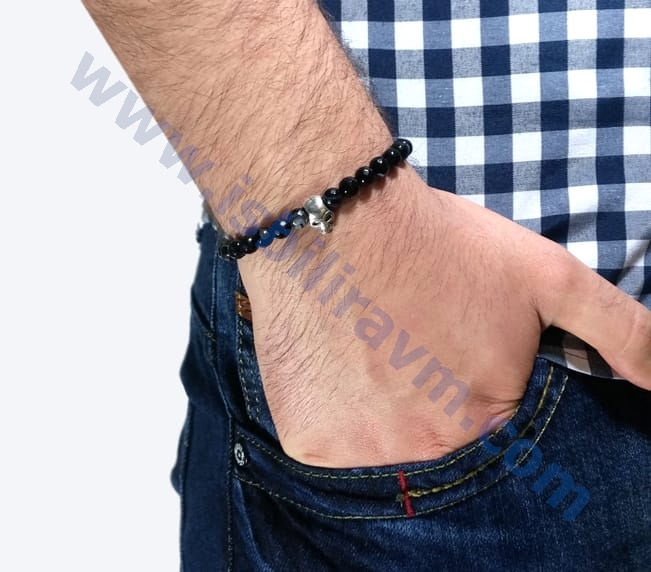 Bu akik taşlı erkek bileklik siyah akik taşının en güzel tonlarından özel olarak şeçilerek üretilmiştir. Uzun çalışmalar sonucu orijinal taşlardan üretilen bu erkek doğal taş bileklikleri sizler için ürettik. Ürünlerimizde orijinal doğal taşların yanı sıra estetikliğini arttırmak amacıyla bazı süsleme aparatları kullanılmış ve ürünlerin estetik görünümleri arttırılmıştır. Kullanılan bu aparatlar oksitli metal ve  dökümden üretilmiştir, kimyasal bir elementle temasta bulunmadığı taktirde kararmalara karşı uzun süreli dayanıklı, sağlamdır. Ayrıca orijinal doğal taşlı erkek bilekliklerimiz firmamızın özel olarak üretmiş olduğu daha önce doğal taşlarda ip kesme problemini ortadan kaldırmak için kullanılan kopma ve dağılmalara karşı dayanıklı, kopmayan taş ipi olan misina lastiğine dizilmiştir. Normal kullanımda bu ip oldukça dayanıklı esnek ve uzun ömürlüdür. Bu özellikleriyle doğal taşlı erkek bileklikleri uzun süreler rahatlıkla kullanabilirsiniz. Bu doğal taşlı erkek bileklikleri hem estetik görünmek için takı olarak hemde doğal taşların muhteşem enerji ve faydalarından yararlanabilmek için kullanabilirsiniz. Bu ürün orijinal siyah akik taşından üretildiği için akik taşının şu psikolojik ve fiziksel faydalara sahiptir ; Çağımızın en büyük sorunlarından olan strese karşı iyi geldiği tespit edilmiştir. Akıl ve mantık gücümüzün gelişmesini sağlar. Nazara karşı korunmamızı sağlar. Hamilelik sürecinde anne bebek sağlığı için faydalı olduğu tespit edilmiştir. Kan dolaşımını düz