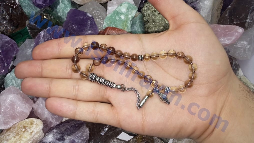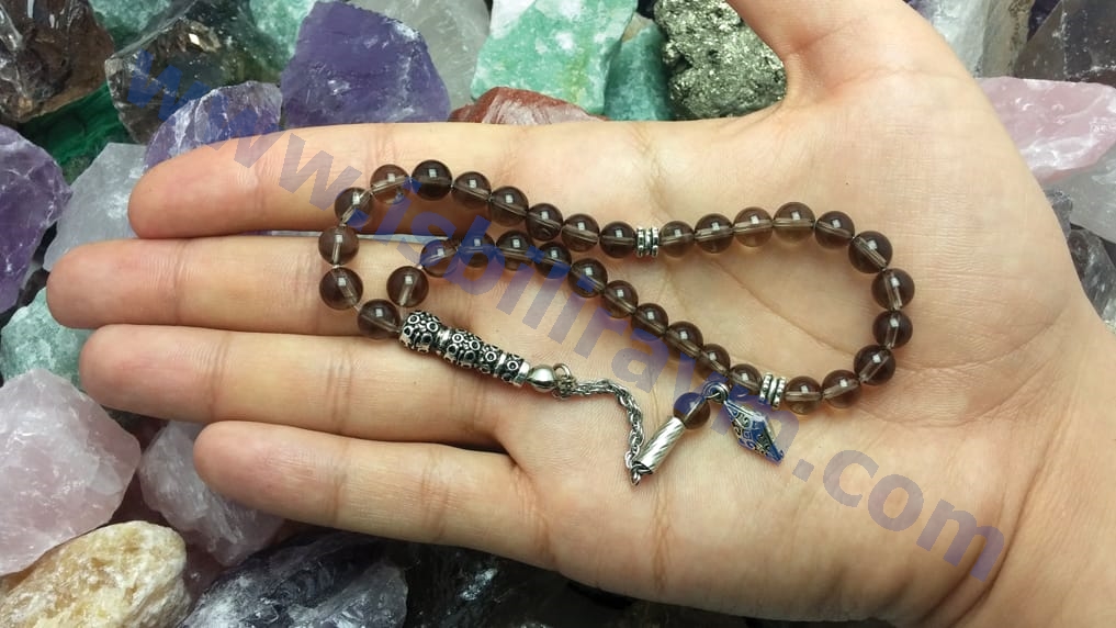 Bu dumanlı kuvars doğal taş tesbih dumanlı kuvars taşının en güzel tonlarından özel olarak şeçilerek üretilmiştir. Bu dumanlı kuvars taşından üretilmiş olan tesbihin püskülü, imameleri, ayracı hiçbir yerde bulamıyacağınız model ve tasarımda olup, bu dumanlı kuvars tesbihler firmamızın bizzat tasarladığı modelde üretilmiştir. Ürünlerimizde orijinal doğal taşların yanı sıra estetikliğini arttırmak amacıyla bazı süsleme tesbih aparatları kullanılmış ve ürünlerin estetik görünümleri arttırılmıştır. Alacağınız tesbihte eğer farklı tesbih aparatı kullanmak isterseniz tesbih malzemeleri kategorimizden püskül veya diğer malzemeleri seçip istediğiniz malzemede tesbihinizi dizdirebilirsiniz, bu isteğinizi sipariş notunda veya irtibat numaralarımızdan bize ulaşarak talep edebilirsiniz. Kullanılan bu aparatlar oksitli metal ve dökümden üretilmiştir, kimyasal bir elementle temasta bulunmadığı taktirde kararmalara karşı uzun süreli dayanıklı ve sağlamdır. Ayrıca orijinal doğal taş tesbihlerimiz firmamızın özel olarak üretmiş olduğu doğal taş tesbihlerde ip kesme problemini ortadan kaldırmak için kullanılan kopma ve dağılmalara karşı dayanıklı, kopmayan taş ipi olan elastik misina tarzı özel lastik ipe dizilmiştir. Normal kullanımda bu ip oldukça dayanıklı esnek ve uzun ömürlüdür. Bu özellikleriyle ürünlerimizi ip kopması, tesbih dağılması gibi problemleri yaşamadan rahatlıkla uzun süreler kullanabilirsiniz. Ayrıca bu özel ipin esnek elastik yapısı itibarı ile; tesbihimiz her bileğe rahatlıkla geçmekte ve böylece zaman zamanda tesbihi bileğinize takarak bileklik olarak da kullanabilirsiniz. Sizlerede özel tasarım ve dayanıklı özel ipiyle üretilmiş, dumanlı kuvars tesbih satın almanızı tavsiye ederiz. Ayrıca dumanlı kuvars taşı fiyatları da toptan fiyatına yakın uygun fiyattatır. Bu doğal taş tesbihleri hem sallamak hemde stres atmak için çekerek kullanabilirsiniz. Ayrıca bu tesbihlerin tane sayısı 33 olduğundan bu tesbihleri zikir çekmek amaçlı veya namazlarda tesbih çekmek amaçlı da kullanabilirsiniz. Çok amaçlı kullanabileceğiniz bu tesbihleri aynı zamanda muhteşem enerji ve faydalarından yararlanabilmek için de kullanabilirsiniz. Bu ürün orijinal dumanlı kuvars taşından üretildiği için dumanlı kuvars taşının şu psikolojik ve fiziksel faydalara sahiptir ; en çok bilinen ve kullanılan özelliği panik atağa iyi gelmesidir. Meditasyon sırasında kullanılabilecek bir taştır. Sinir bozukluklarına iyi gelir. Strese iyi gelir. Ayak hastalıklarında etkilidir. Aşırı kıramplara iyi gelir. Güven duygusunu arttırır. Kişinin yeni deneyimlere açık olmasına yardımcı olur. Girişimcilik yeteneğini arttırır. Kişinin yaşanılan ana odaklanıp o anı en iyi şekilde yaşamasına yardımcı olur.İletişim bozukluklarını giderici etkileri vardır. Korkunç kabuslar görmemizi engeller. Kişiye huzur ve sakinlik verir. Negatif enerjinin pozitif enerjiye dönüştürülmesine yardımcı olur.