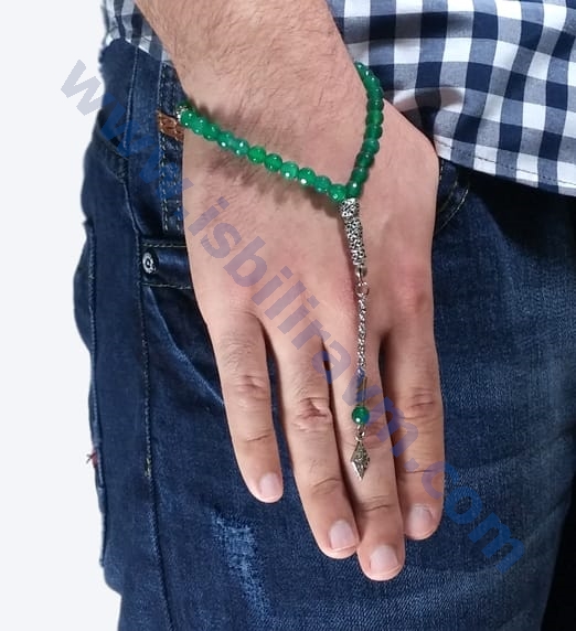 Bu akik doğal taş tesbih akik taşının en güzel tonlarından özel olarak şeçilerek üretilmiştir. Bu yeşil akik taşından üretilmiş olan tesbihin püskülü, imameleri, ayracı hiçbir yerde bulamıyacağınız model ve tasarımda olup, bu yeşil akik taşı tesbihler  firmamızın bizzat tasarladığı modelde üretilmiştir. Ürünlerimizde orijinal doğal taşların yanı sıra estetikliğini arttırmak amacıyla bazı süsleme tesbih aparatları kullanılmış ve ürünlerin estetik görünümleri arttırılmıştır. Alacağınız tesbihte eğer farklı tesbih aparatı kullanmak isterseniz tesbih malzemeleri kategorimizden püskül veya diğer malzemeleri seçip istediğiniz malzemede tesbihinizi dizdirebilirsiniz, bu isteğinizi sipariş notunda veya irtibat numaralarımızdan bize ulaşarak talep edebilirsiniz. Kullanılan bu aparatlar oksitli metal ve  dökümden üretilmiştir,  kimyasal bir elementle temasta bulunmadığı taktirde kararmalara karşı uzun süreli dayanıklı ve sağlamdır. Ayrıca orijinal doğal taş tesbihlerimiz firmamızın özel olarak üretmiş olduğu  yeşil akik taşlı tesbihlerde ip kesme problemini ortadan kaldırmak için kullanılan kopma ve dağılmalara karşı dayanıklı, kopmayan taş ipi olan elastik misina tarzı özel lastik ipe dizilmiştir. Normal kullanımda bu ip oldukça dayanıklı esnek ve uzun ömürlüdür. Bu özellikleriyle ürünlerimizi ip kopması, tesbih dağılması gibi problemleri yaşamadan rahatlıkla uzun süreler kullanabilirsiniz. Ayrıca bu özel ipin esnek elastik yapısı itibarı ile; tesbihimiz her bileğe rahatlıkla geçmekte ve böylece zaman zamanda tesbihi bileğinize takarak bileklik olarak da kullanabilirsiniz. Sizlerede özel tasarım ve dayanıklı özel ipiyle üretilmiş, yeşil akik tesbih satın almanızı tavsiye ederiz.  Ayrıca yeşil akik taşı tesbih fiyatları da toptan fiyatına yakın uygun fiyattatır. Bu doğal taş tesbihleri hem sallamak hemde stres atmak için çekerek kullanabilirsiniz. Ayrıca bu tesbihlerin tane sayısı 33 olduğundan bu tesbihleri zikir çekmek amaçlı veya namazlarda tesbih çekmek amaçlı da kullanabilirsiniz. Çok amaçlı kullanabileceğiniz bu tesbihleri aynı zamanda muhteşem enerji ve faydalarından yararlanabilmek için de kullanabilirsiniz. Bu ürün orijinal akik taşından üretildiği için akik taşının şu psikolojik ve fiziksel faydalara sahiptir ; Çağımızın en büyük sorunlarından olan strese karşı iyi geldiği tespit edilmiştir. Akıl ve mantık gücümüzün gelişmesini sağlar. Nazara karşı korunmamızı sağlar. Hamilelik sürecinde anne bebek sağlığı için faydalı olduğu tespit edilmiştir. Kan dolaşımını düzenlediği ve tansiyonu dengeleyici özelliğinin olduğuda tespit edilmiştir.Damarları koruyucu güçlendirici etkileri tespit edilmiştir. Cilt rahatsızlıklarına iyi geldiği söylenir. Dişler ve kemikler için faydalıdır. Taşıyan kişiyi olumsuzluklardan koruyucu etkisi vardır. Bu özelliği hadislerlede kanıtlanmışdır. Uykusuzluklara ve karabasanlara iyi gelir. Metebolizmamızı hızlandırır. Korkaklığa karşı iyi geldiği bilinir. Çevreyle uyumu arttırır. Akik taşı kendinizi kötü hissettiğinizde olayların iyi yönlerini görmenizi sağlar. Negatif enerjiden insanı arındırır ve insana iyilik mutluluk verir.