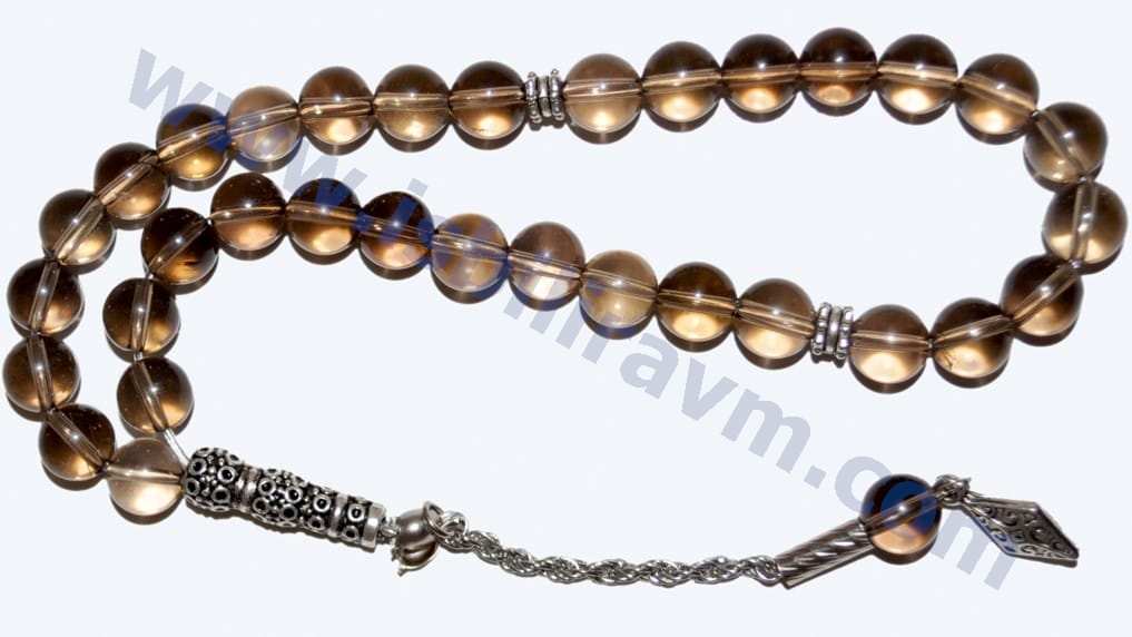 Not: Bu dumanlı kuvars tesbih stüdyo çekimlerindeki flaş ve ışıktan dolayı olduğundan daha açık tonda çıkmıştır. Ürünün diğer fotoğraflarınıda incelerseniz ışıksız gerçek koyu tonlu fotoğrafını görebilirsiniz. Alacağınız dumanlı kuvars tesbih biraz daha koyu tonda olan resimdeki tesbih gibi olacaktır.