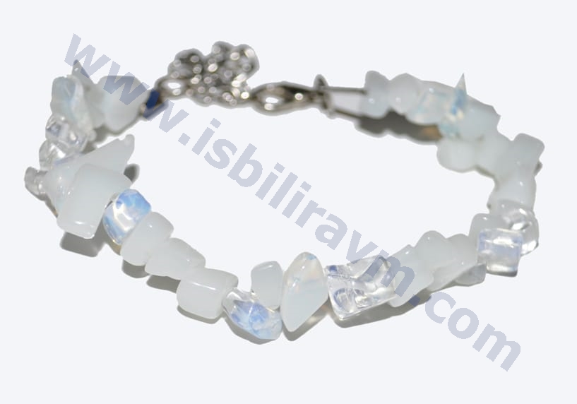Bu opal taşı bileklik opal taşının en güzel tonlarından özel olarak şeçilerek üretilmiştir. Uzun çalışmalar sonucu orijinal taşlardan üretilen bu kadın doğal taş bileklikleri sizler için ürettik. Ürünlerimizde orjinal doğal taşların yanı sıra estetikliğini arttırmak amacıyla bazı süsleme aparatları kullanılmış ve ürünlerin estetik görünümleri arttırılmıştır. Kullanılan bu aparatlar oksitli metal ve  dökümden üretilmiştir, kimyasal bir elementle temasta bulunmadığı taktirde kararmalara karşı uzun süreli dayanıklı, sağlamdır. Ayrıca orijinal opal bilekliklerimiz firmamızın özel olarak üretmiş olduğu daha önce doğal taşlarda ip kesme problemini ortadan kaldırmak için kullanılan kopma ve dağılmalara karşı dayanıklı, kopmayan taş ipi olan misina lastiğine dizilmiştir. Normal kullanımda bu ip oldukça dayanıklı esnek ve uzun ömürlüdür. Bu özellikleriyle doğal taşlı opal taşı bileklikleri uzun süreler rahatlıkla kullanabilirsiniz. Bu doğal opal bileklikleri hem estetik görünmek için takı olarak hemde doğal taşların muhteşem enerji ve faydalarından yararlanabilmek için kullanabilirsiniz. Bu ürün orijinal opal taşından üretildiği için opal taşının şu psikolojik ve fiziksel faydalara sahiptir ; Negatif duyguları yok ettiğine ve duygusal dengeleyici olduğuna inanılan bir taşdır. Gözler için faydalıdır görme gücümüzü arttırıcı etkileri vardır. Sezgi arttırıcı etkisi bilinmektedir. Üst bene ulaşmamıza yardımcı olur. Stresede iyi geldiği söylenmektedir. Eklem iltihaplarının iyileşmesine yardımcı olur. Böbrek ve kan hastalıkları için şifalıdır. Ön sezi yeteneğini geliştirir. Özgüveni arttırıcı atkileri vardır. Hasetlik, kıskançlık gibi kötü duyguları yok eder. İlham kaynağı olarakda bilinir. Hayatımızda yapmış olduğumuz degişimlere alışmamıza yardımcı olur. Hafızayı kuvvetlendirir. Kötü rüyalarda kurtarır. Negatif enerjiyi yok eder. Utangaçlıktan kurtulmamıza yardımcı olur. Hafızayı kuvvetlendirir.