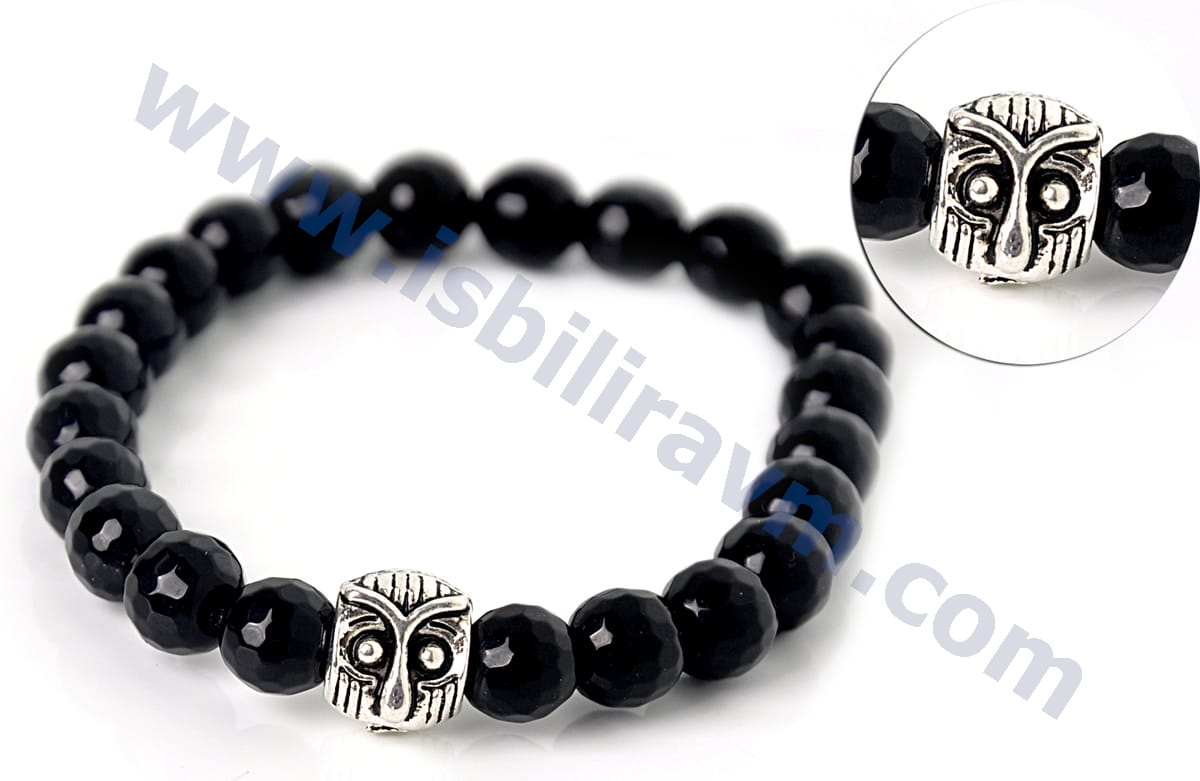 Bu oniks taşlı erkek bileklik oniks taşının en güzel tonlarından özel olarak şeçilerek üretilmiştir. Uzun çalışmalar sonucu orijinal taşlardan üretilen bu erkek doğal taş bileklikleri sizler için ürettik. Ürünlerimizde orijinal doğal taşların yanı sıra estetikliğini arttırmak amacıyla bazı süsleme aparatları kullanılmış ve ürünlerin estetik görünümleri arttırılmıştır. Kullanılan bu aparatlar oksitli metal ve dökümden üretilmiştir, kimyasal bir elementle temasta bulunmadığı taktirde kararmalara karşı uzun süreli dayanıklı, sağlamdır. Ayrıca orijinal doğal taştan üretilmiş erkek bilekliklerimiz firmamızın özel olarak üretmiş olduğu daha önce doğal taşlarda ip kesme problemini ortadan kaldırmak için kullanılan kopma ve dağılmalara karşı dayanıklı, kopmayan taş ipi olan misina lastiğine dizilmiştir. Normal kullanımda bu ip oldukça dayanıklı esnek ve uzun ömürlüdür. Bu özellikleriyle doğal taşlı erkek bileklikleri uzun süreler rahatlıkla kullanabilirsiniz. Bu doğal taş bileklikleri hem estetik görünmek için takı olarak hemde doğal taşların muhteşem enerji ve faydalarından yararlanabilmek için kullanabilirsiniz. Bu ürün orijinal oniks taşından üretildiği için oniks taşının şu psikolojik ve fiziksel faydalara sahiptir ; Oniks taşı'nın kadın erkek ilişkilerini dengelediği tespit edilmiştir. Evli çiftler arasında uyumluluk sağladığı bilinmektedir. Bağımlılıktan kurtulmaya yardımcı olur. Yani; sigara, alkol vb. hertürlü kurtulmak istediğiniz bağımlılıkdan kurtarır. Oniks taşının kişideki oto kontrol yeteneğini geliştirdiği tespit edilmiştir. Meditasyon sırasında kişinin içini görmeye yardımcı olur. Zararlı seksüel hırsları zayıflatıcı etkileri tespit edilmiştir. Pozitif düşünmemize yardımcı olur. Stres ve depresyona karşı etkilidir. Kişiye mutluluk ve öz güven verir. Oniks taşı şans taşı olarak da bilinir. Cinsel gücü arttırıcı etkileride bilinmektedir. Konsantrasyonu artırır. Negatif enerjiyi ortadan kaldırdığı gibi kişiye pozitif enerji verir. Nazara karşı çok etkili bir taştır. Aşırı gergin kişileri sakinleştirici etkisi vardır. Hertürlü kaygılardan kurtarır insanı. Kişinin korkularından kurtulmasına yardımcı olur cesaret verir. Kulaklar için faydalıdır. Tene deymesiyle birlikte etkisini gösterir duyma gücünü yükseltir. Oniks taşı mantar hastalıkları ve enfeksiyonlarda kullanılır.